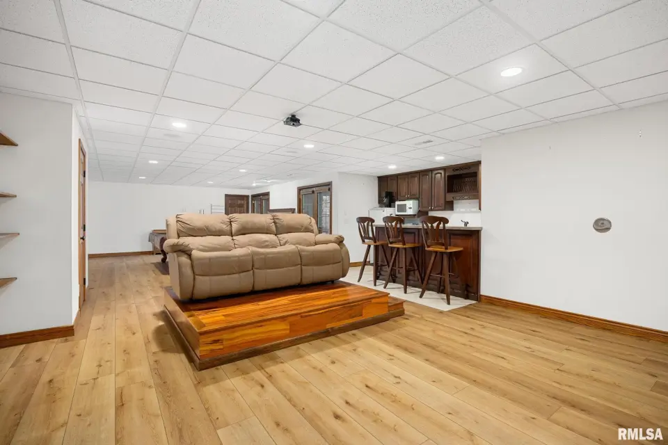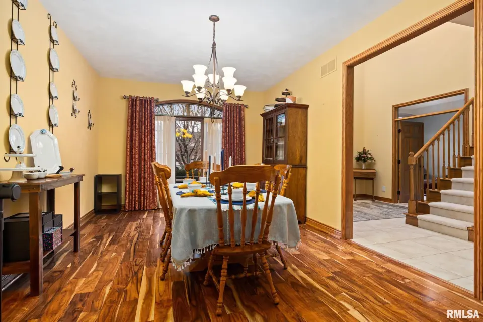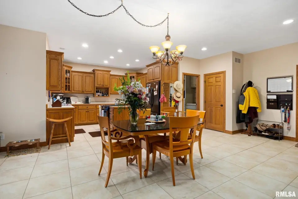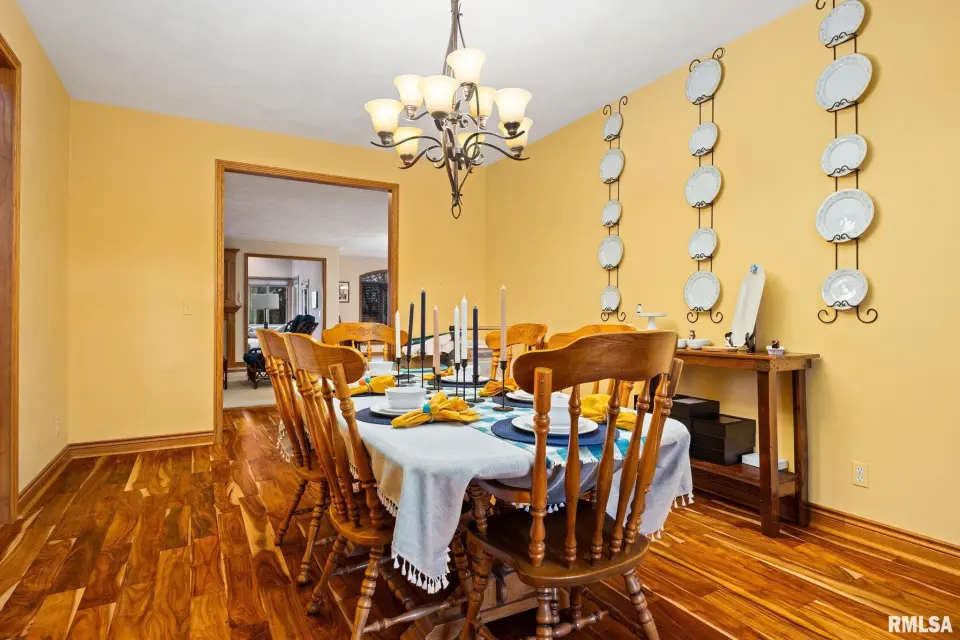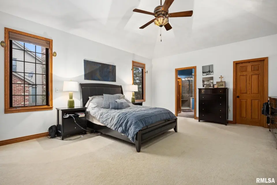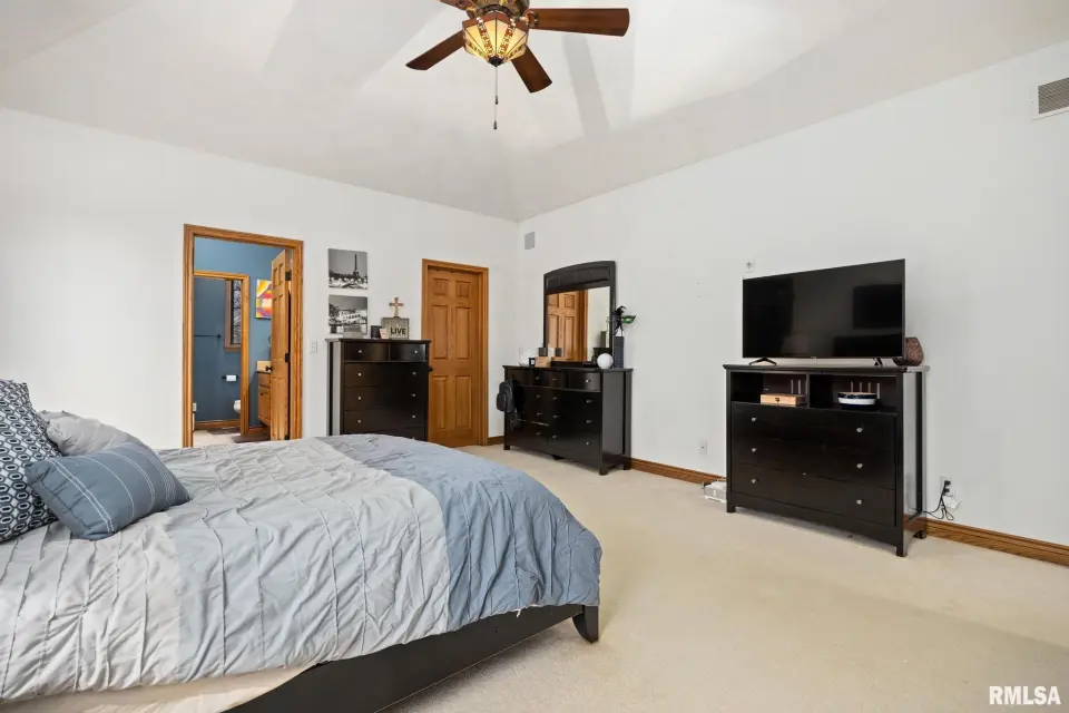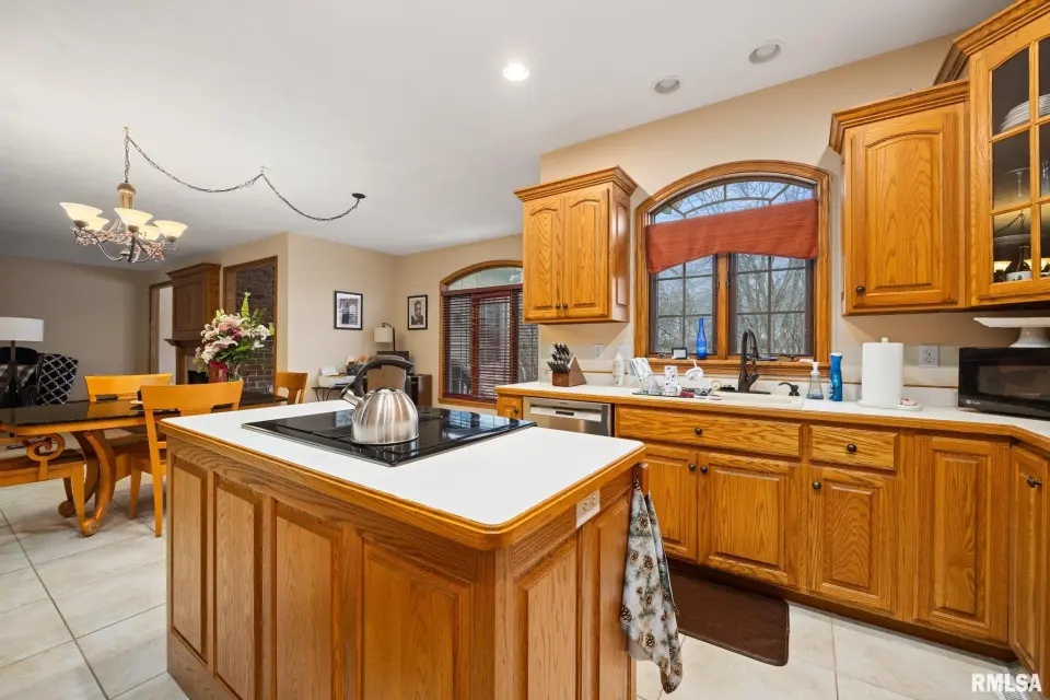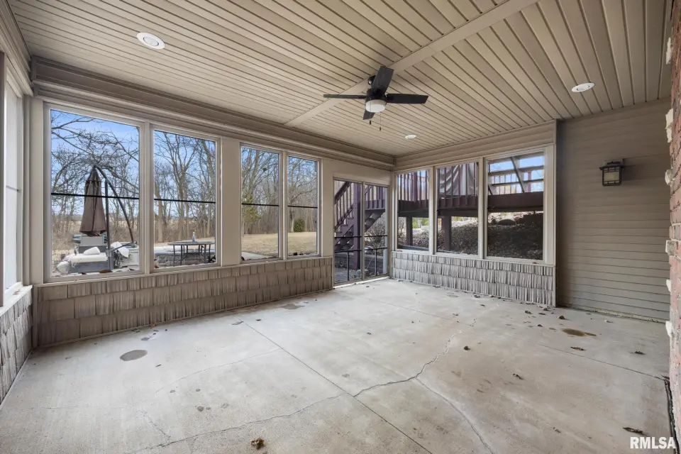 Enjoy 3 total fireplaces, including one in the expansive main floor primary suite with vaulted ceiling, walk-in closet, and spa-like bath with sauna, double sinks, and tiled walk-in shower. A Jack & Jill bath connects to a main floor bedroom/office. Upstairs are 2 bedrooms with another Jack & Jill bath and great closet space. The full finished basement includes a large possible 5th bedroom (no window), full bath, full bar with dishwasher, theater area, rec room, and 2 walkouts to a screened porch under the 4-Season room. Outside features a large patio, fire pit, and 3-stall garage. Spacious laundry/mudroom, and excellent storage throughout. A must-see home for entertaining and comfort! Furniture to stay in the home: basement entertainment center & pool table, office safe & bookcase, basement kitchen appliances stay as well. Updates include; Heat exchanger 2023, A/C unit 2019, and roof 2017, gas water heater 2016.
