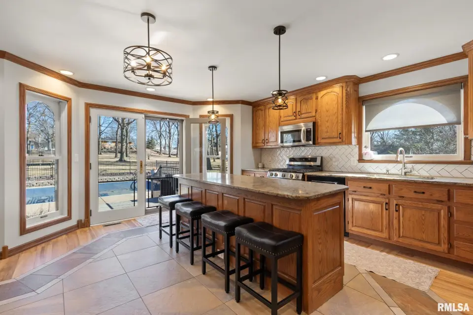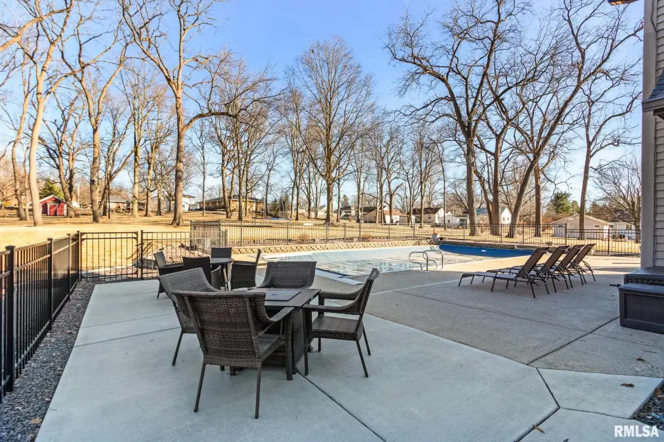 Offering over 4,000 finished square feet of living space, features 5 spacious bedrooms, 3 full bathrooms, and 2 half bathrooms, all situated on a beautifully landscaped .7 ac wooded lot on a quite cul-de-sac. Enjoy your own private backyard retreat featuring a 20’ x 40’ in-ground saltwater pool with in-pool lighting, diving board, remote pool cover, solar remote outdoor lighting, large patio with gas line for grilling. The 60’ x 50’ fenced area provides added privacy. Inside, you'll find an inviting two story foyer, formal dining room, main-floor primary suite, laundry room, open concept living room with gas fireplace and kitchen. The kitchen features a large island, solid surface countertops, stylish backsplash, and custom Amish-built cabinetry. The primary suite offers private pool access, a walk-in closet, built-ins, and a spacious bath. Upstairs includes two generous bedrooms plus a private guest suite with its own entrance, full bath, vaulted ceiling and walk-in closet. The finished basement adds a large family room, second kitchen, half bath, fifth bedroom and ample storage. The three-car garage with tall ceilings and built-in storage completes the home. (car lift does not stay.) Many updates throughout property. Located within walking distance to Eureka Lake and trails, and less than 25 miles from Peoria or Bloomington. Schedule your private showing today!