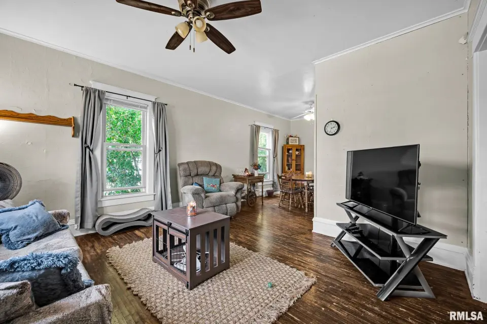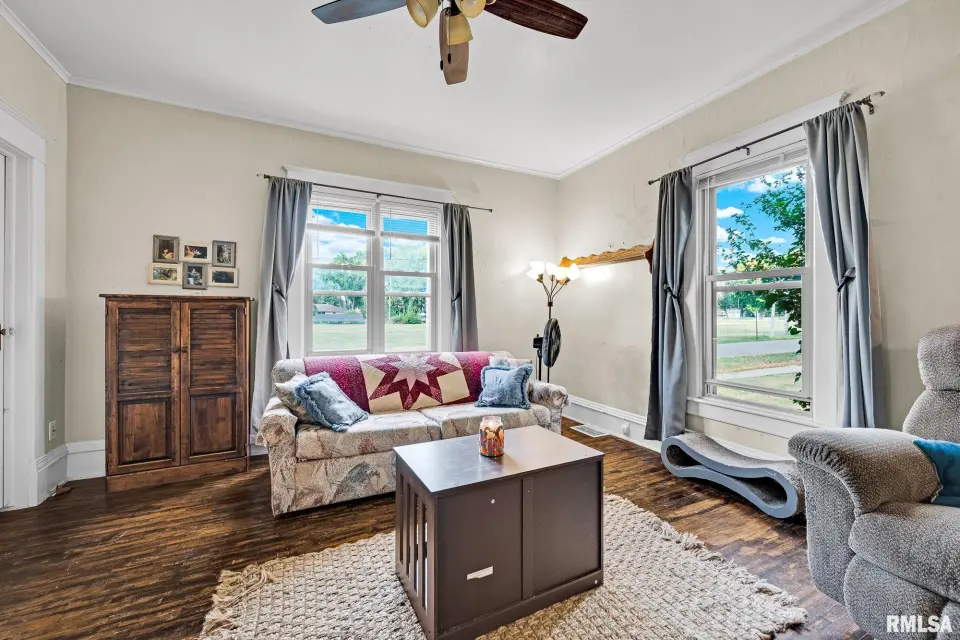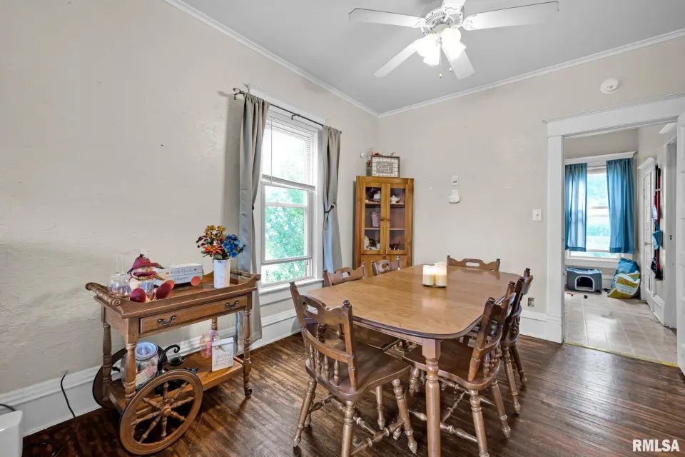 From the moment you step inside, beautiful hardwood floors steal the show across the main level, creating warmth and timeless character. The inviting family room features a cozy wood-burning fireplace — the perfect spot to gather on chilly Illinois evenings. The eat-in kitchen offers plenty of natural light, a built-in for added storage, and plenty of space to make it your own. A versatile main-level 4th bedroom provides flexible options — home office, guest room, or future laundry room, as it’s already plumbed and ready. Storage is abundant throughout, from the full basement to the attic space above the attached 2-car garage. Outside, you’ll appreciate the fenced-in yard, Newer Roof (6/2023), brand-new furnace (1/14/2026), and the added bonus of an oversized detached garage/shed combo — ideal for hobbies, equipment, or extra vehicles. With solid updates already in place and so much character throughout, this home is ready for its next chapter. A little TLC will truly make it shine! Schedule your private tour today and imagine the possibilities.