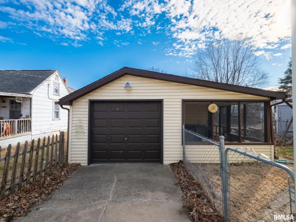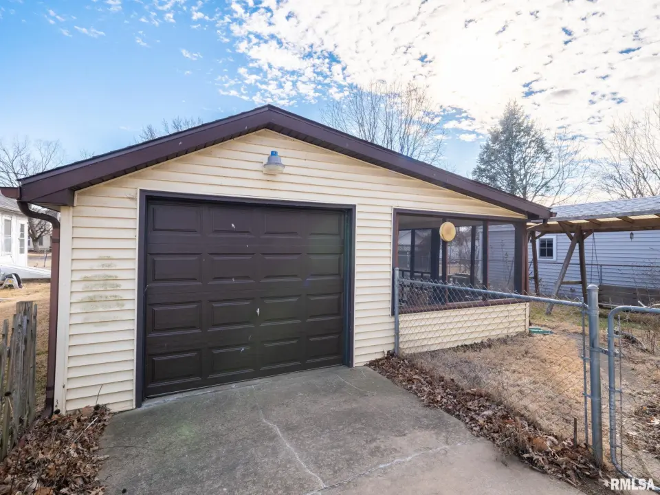 The main floor includes a convenient bedroom, while the upper level offers a distinctive layout with two additional bedrooms and bonus rooms which would be perfect for flexible living, office space, or hobbies. Enjoy your morning coffee on the screened-in front porch, or unwind in the additional screened porch just off the garage. The property features a rare dual-access garage setup with a one-stall garage off the driveway and a second one-stall garage accessed from the alley and is currently set up as a woodworking shop, ideal for hobbyists or extra workspace. The fenced-in yard provides privacy and room to enjoy the outdoors. A full, unfinished basement offers abundant storage along with laundry and utilities. Major update already completed with a brand new roof on house and garage in 2024! This home has great bones and is ready for your personal touch! Primarily in need of cosmetic updates, it presents an excellent opportunity to modernize and build equity. Bring your vision and make this one truly shine!