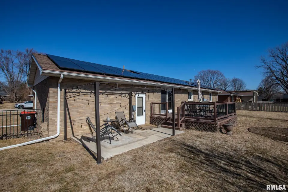 An oversized picture window fills the living area with natural light, while custom built-ins provide ample storage. Three bedrooms showcase original hardwood floors that add timeless warmth and character. The primary bedroom includes an attached en suite bathroom with a walk-in shower and storage shelves for added convenience. A sliding door opens to the back deck, overlooking the fully fenced yard which includes a concrete patio complete with electrical hookups, ready for your hot tub installation! The partially finished basement provides ample living space with a spacious great room and gaming room. The utility room spans the entire length of the home with plenty of storage space! The two-car attached garage is equipped for an electric vehicle charging station. Energy conscious buyer will love the included solar panels, which have consistently produced enough energy to fully power the home. Conveniently located within walking distance to local schools and parks, this home is truly a gem!