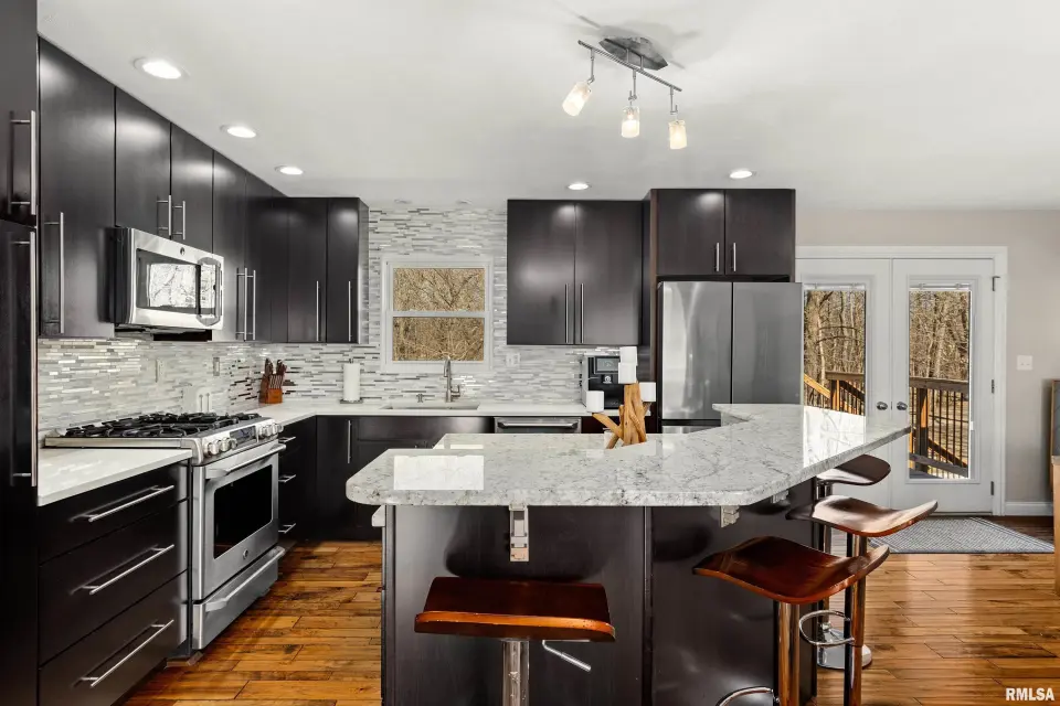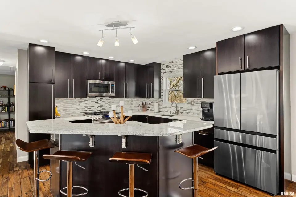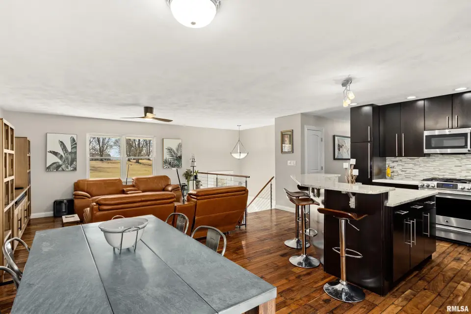 IS! No, you're not dreaming. This is not a mirage, nor is this a drill. This is ACTUALLY an extremely well-built, BEAUTIFUL home with over 6 acres zoned agricultural in rural Dunlap (less 10 a minute drive to DHS) that is priced to SELL! Seated way back from the road on a double lot, this property is so serene. The home has been loving cared for & remodeled with a sharp, clean, modern mid century vibe. Open kitchen/dining room/livingroom combo. 3 bedrooms, 2 bathrooms & plenty of room to grow if you need more in the professionally finished, dazzling, bright, walkout, daylight-windowed, lower level that currently houses a family room, recreation room, a wet bar with mini fridge, an office, a full bath and a gorgeous, giant laundry room. All of the high-end fixtures you've been looking for are here with skillful decor. Plus, look at that view! All kitchen appliances are staying. Amazing front and back patios, deck & a shed. Brand new roof, siding in 2019, new water heater 2022, new HVAC 2010.