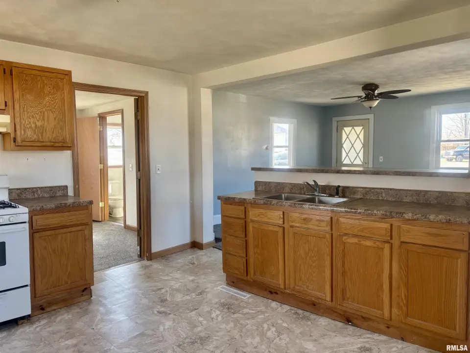 Fabulous size yard to do whatever you want, build on, put up a garage, put up a building...heck do it all!!! This open floor plan home offers new carpet and new inside doors to bedrooms and bath. The stove, washer, dryer and ventless heater stay but are NOT WARRANTED. 2 Older medal sheds on property. HOME IS BEING SOLD AS IS. WATER IS OFF