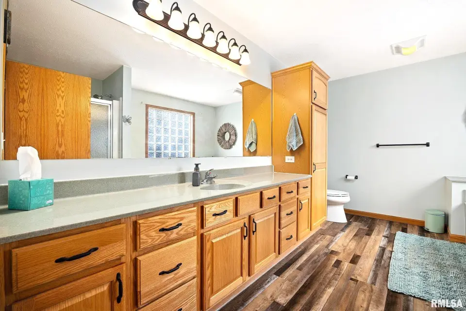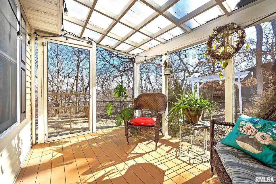 This home features today's modern amenities combined with an amazing kitchen including undercounter cabinet lighting, Bosch dishwasher, reverse osmosis filtration system, and base cabinet & pantry pull-out drawer systems throughout; experience kitchen cabinet storage at a higher level. Relax in the spacious 23' x 12' window surround family room / four season room with an en-suite screened in sitting porch; both sharing an amazing backyard view. The master bedroom has a spacious 9' x 7' walk in closet with an en-suite master bathroom featuring a salon style extra large corian bathtub & matching countertop, walk-in 48" shower, & newer luxury vinyl flooring. Main level laundry with 60" base & upper cabinet storage & large utility closet space. Extra deep & wide 24' x 23' two car garage with shelf storage. Expansive .61 acre fenced in lot. Separate detached 8' x 10' garden shed with patio paver patio. Water softner owned & included with sale. Radon system. Newer Goodman 2.5 ton HVAC heat pump with backup heat strips. Don't miss this one! (Washer & Dryer are reserved to the seller).