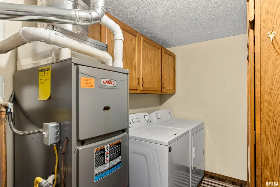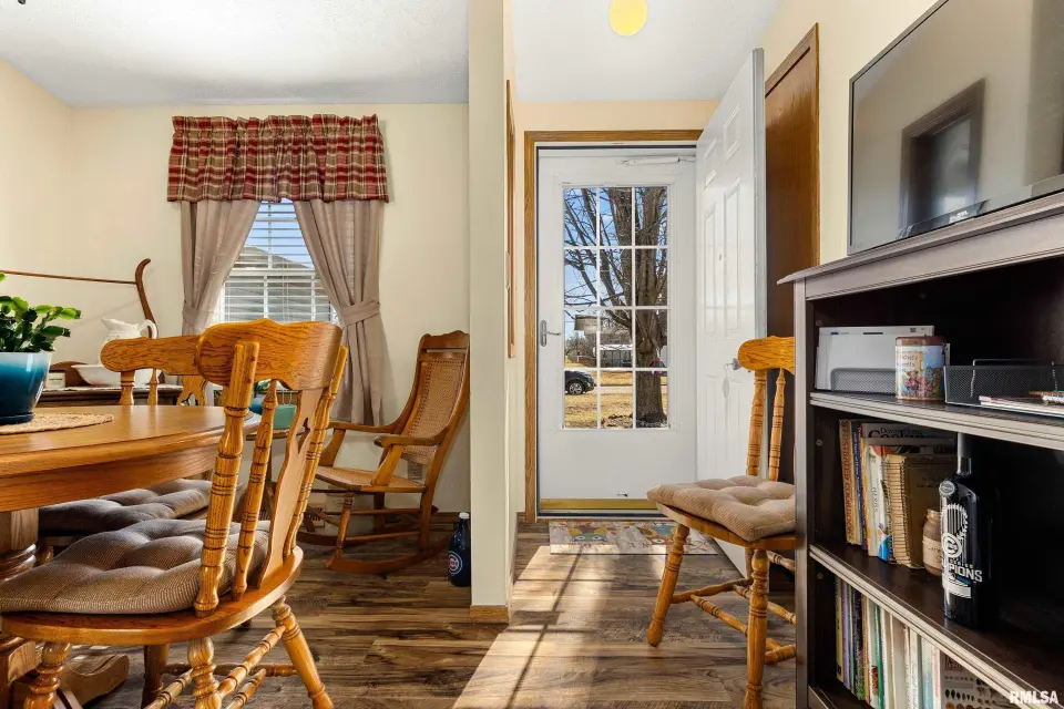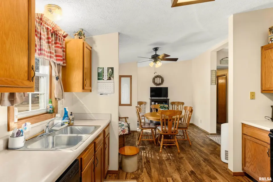 Spacious living room overlooks deck and yard. Abundant cabinetry and adjoining dining area; main floor laundry (washer & dryer new 2024 stay). Primary suite features full bath and walk-in closet. Major updates include Lennox furnace & A/C (2023), LVP flooring (2023), gutters with Leaf Guard (2023), air ducts cleaned (2023) new paint throughout, patio door (2024), dishwasher (2024), roof approximately 5 years old. 2-car attached garage, vinyl siding. Convenient location near schools, shopping, restaurants & YMCA. Being sold AS-IS. Schedule your showing today!