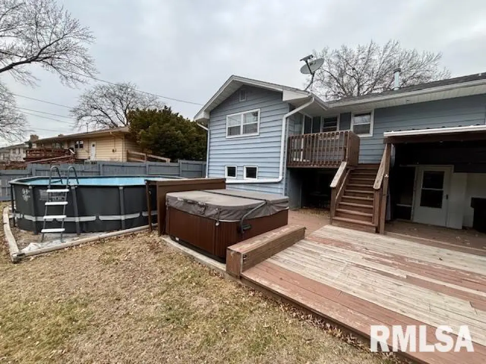 Spacious master bedroom, hot tub and pool, back porch deck, partially finished basement with storage. All appliances can stay but have to be negotiated separately.