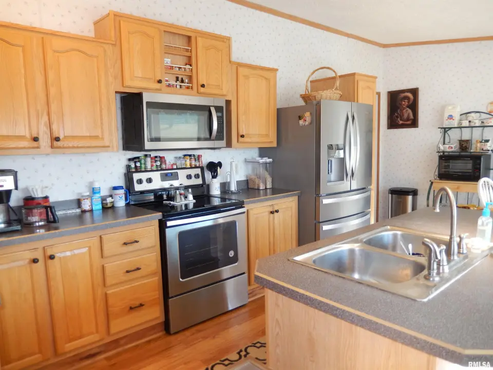 You’ll love the large kitchen with ample cupboards, an island, and lots of natural light flowing in. The master bedroom features an updated bath with a walk-in shower and most flooring is vinyl plank. The laundry room has a generous folding counter, and also houses the high-efficiency furnace and tankless water heater. This home boasts a metal roof, vinyl siding and replacement windows that are all new within the last 10 years. Attached is an oversized 2 car garage providing extra storage with even more in the walk-up attic. Outside is a large 40x18 carport/equipment shed, a tool shed w/electricity and built in work bench, plus another storage shed. Call today for your appointment to see this very well loved and maintained property!