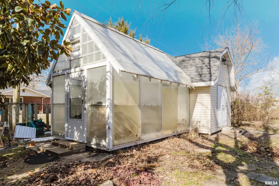 Properties offering this amount of land within city limits are rarely available. This home carries a strong presence and reflects the craftsmanship and scale typical of its era. While some cosmetic updates may be desired, the home has been meticulously cared for and shows consistent pride of ownership. The layout offers both functionality and space to gather, featuring a breakfast nook, formal dining room, and a library or family room located adjacent to the primary bedroom that would serve well as a sitting room, office, or private retreat. Main level laundry adds everyday convenience. Original character remains throughout, along with abundant storage and generous attic space. Tongue and groove detail inside and out adds warmth and architectural interest. Major features include an encapsulated crawl space and all appliances remaining with the home, including the Bosch washer and dryer. Outside, the property truly stands apart. A detached 2 car garage, shed with attic storage, greenhouse, and expansive yard space provide flexibility for gardening, recreation, or future improvements. With 10 total lots plus an additional acre across the street included in the sale, this is a unique opportunity to secure space and long term potential in a small Southern Illinois community.