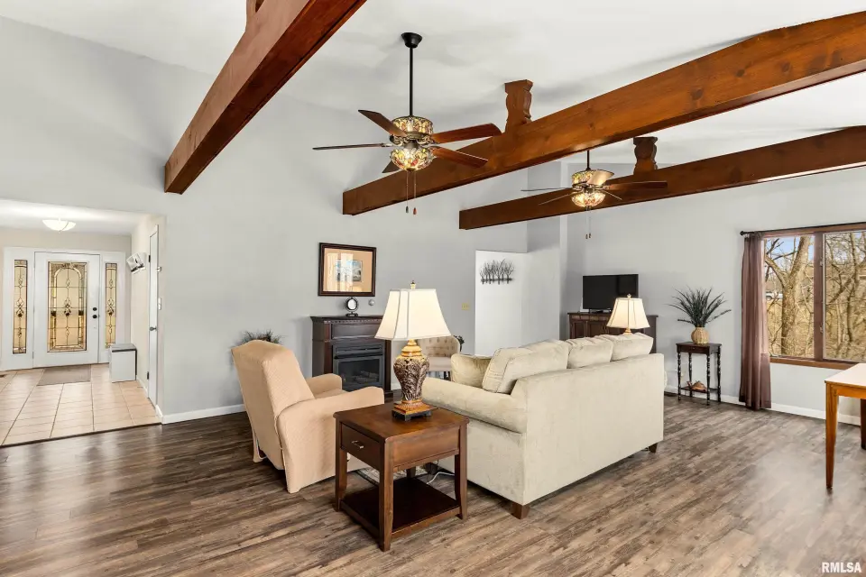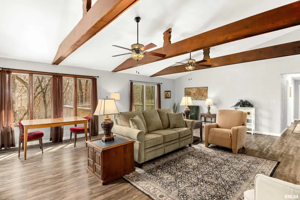 The property showcases timeless character paired with functional updates for today’s lifestyle. Step inside to a welcoming living room highlighted by a vaulted ceiling, creating an open and airy feel filled with natural light. The thoughtful ranch layout offers 4 spacious bedrooms and 3 full bathrooms, including a comfortable primary suite complete with a private bath for your own personal retreat. The finished walkout basement provides additional living space ideal for entertaining, relaxing, or accommodating guests. Whether you envision a recreation room, home office, or fitness space, the lower level offers flexibility to meet your needs. Out back, enjoy peaceful wooded views from the deck — the perfect setting for morning coffee, evening sunsets, or gathering with friends and family. The expansive acreage provides room to explore, play, and truly enjoy the outdoors. Car enthusiasts, hobbyists, or those needing extra storage will appreciate the impressive 4-car detached garage, offering ample space for vehicles, equipment, or workshop potential.