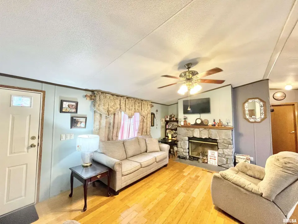 Nestled on nearly 5 acres in Carterville, this property offers the perfect blend of open space, privacy, and functionality. The 3 bedroom, 2 bathroom home features vinyl plank and tile flooring throughout for durability and easy maintenance. Inside, you’ll find a cozy fireplace in the living space. A split floorplan places the primary bedroom and ensuite on one side of the home with the additional bedrooms on the opposite side. The kitchen features ample cabinetry and a stainless steel refrigerator purchased in 2024. Step outside to enjoy the back deck and fenced area. A 30’ x 40’ pole barn with concrete floors, electricity and a wood stove heater provides ample room for equipment, hobbies, or storage. An outdoor storm shelter with 10 person capacity adds an extra layer of safety and peace of mind. Part of the acreage is wooded, creating a natural backdrop and added seclusion, and the property sits beside a large open field, giving the setting a wide, spacious feel. This manufactured home sits on a permanent foundation making it eligible for most financing subject to lender approval. With room to roam, useful outbuildings, and a peaceful rural setting, this property offers a unique opportunity to enjoy country living while still being close to town.