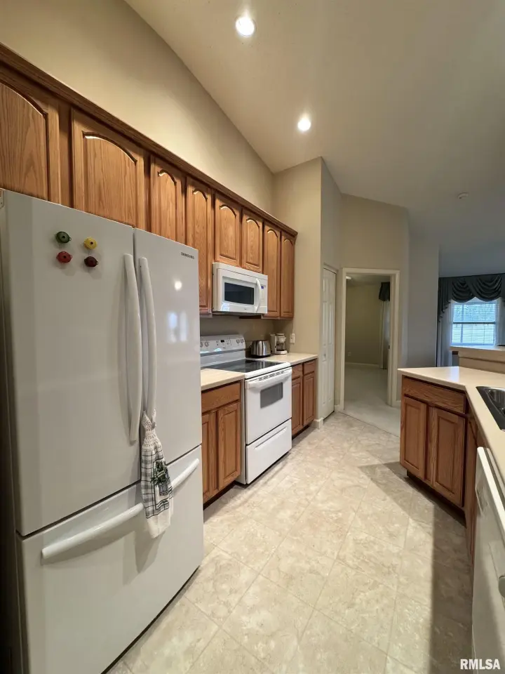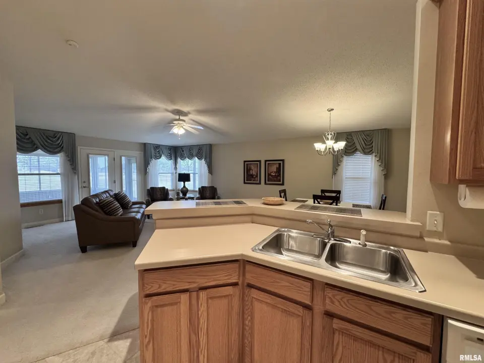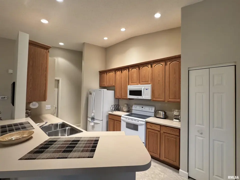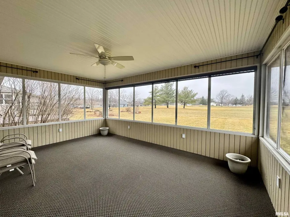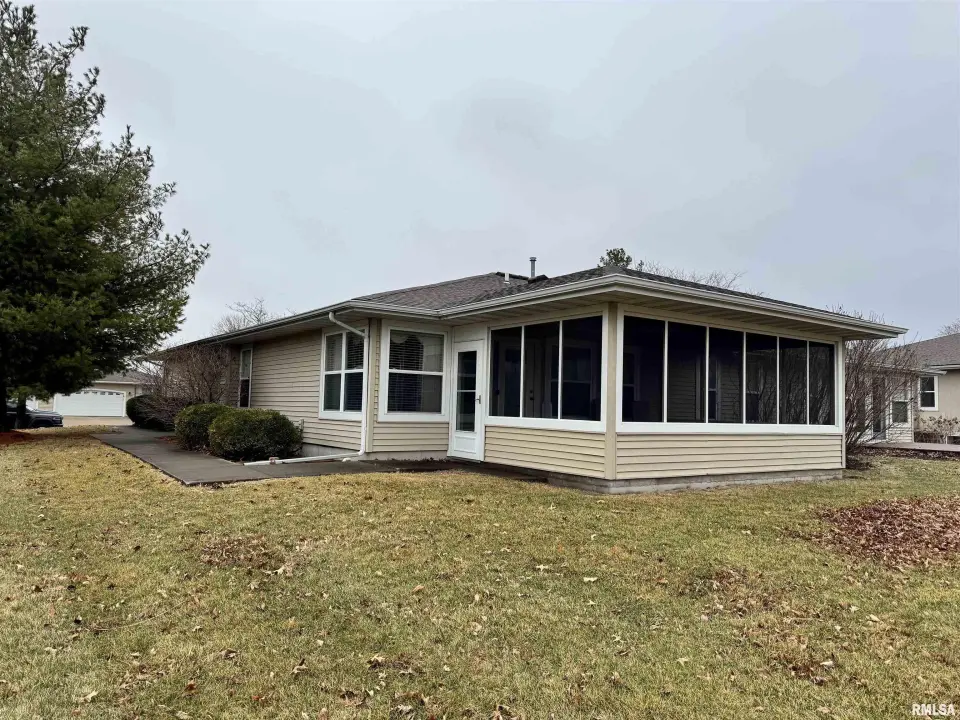 Built in 2003, this home has an open floor plan, with a large living room that is open to a dining area and kitchen, all with vaulted ceilings. The living room has a walkout to a 12x18 screened-in patio, a great space for entertaining this summer. The primary bedroom also has views of the golf course, a large bath with tiled walk-in shower, and a large walk-in closet. The guest bedroom is also large with a walk-in closet and has a full bath. This home also has a den/home office, or could be used as a guest bedroom. Laundry/mudroom, and an attached two-car garage with storage are other features of the home.