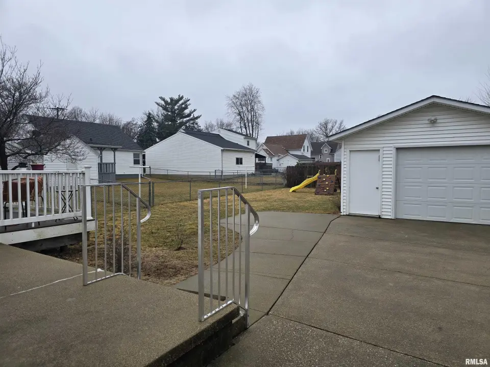 It has a beautiful kitchen with hickory cabinets, hardwood floor, & comes fully applianced with stove, frig, microwave, dishwasher (new 3/26). Appliances, including the washer & dryer are not warranted. It offers a primary bedroom suite with walk-in closet, & walk-in shower bathroom. It has an inviting front porch, along with a nice back deck for entertaining. There is a 1 car detached garage & the back yard is partially fenced in. The play set in back yard can stay. Inside pictures will also be coming soon! The seller has no knowledge of the dates of the HVAC or Roof.