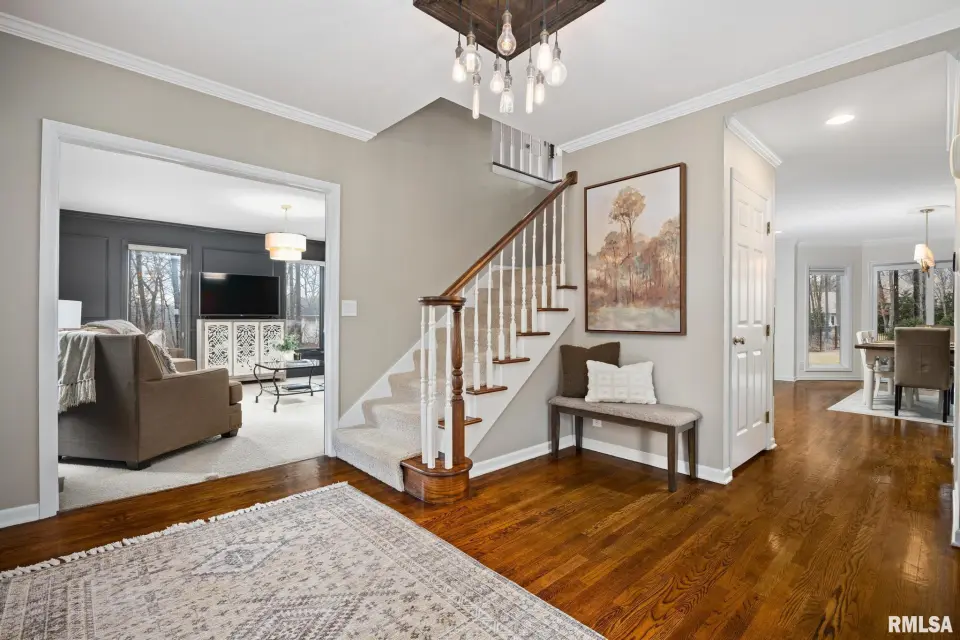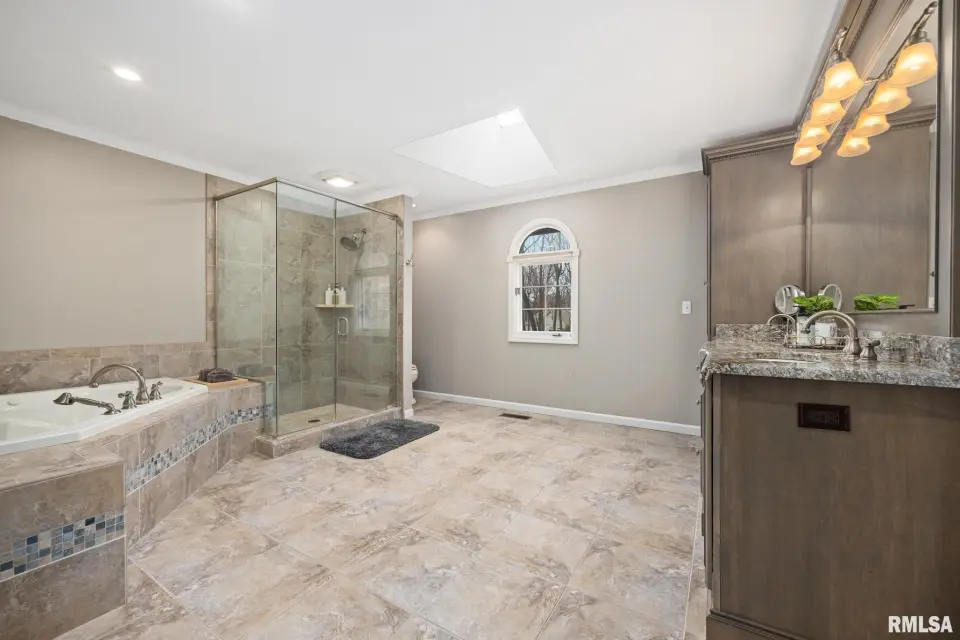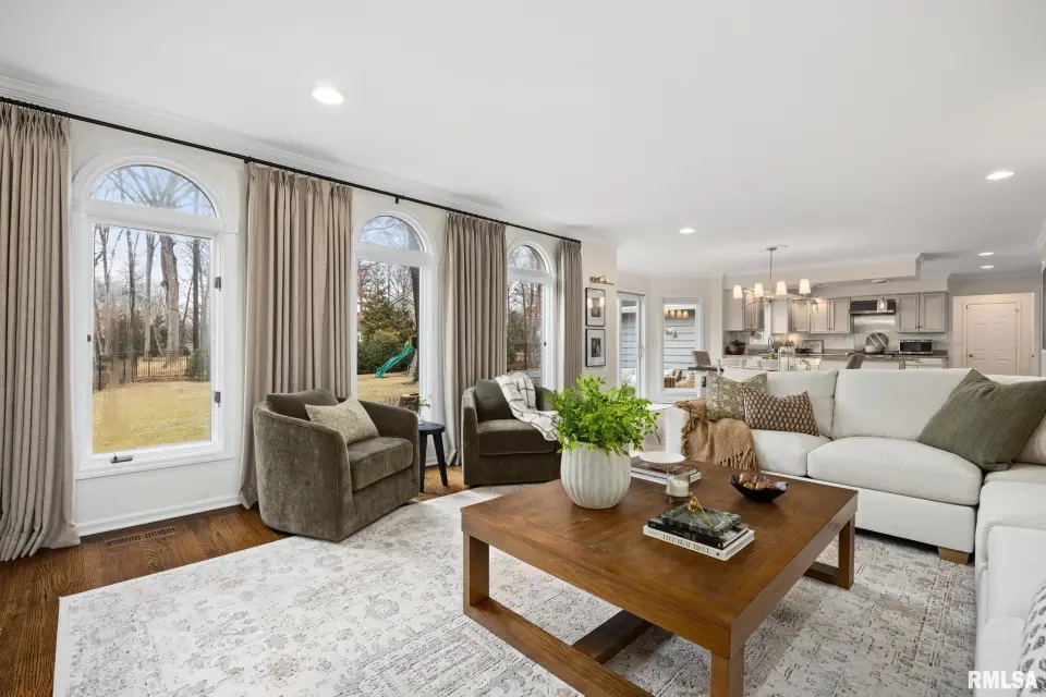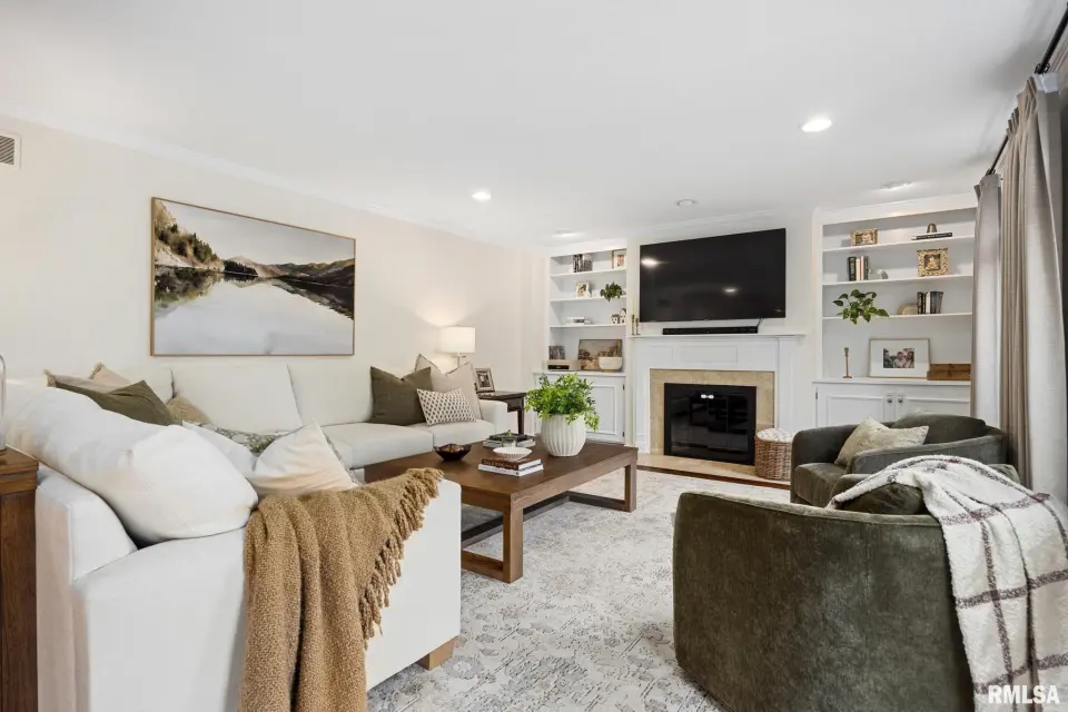Fresh paint and thoughtful improvements make this home truly move-in ready. Inside, the living room, formal sitting room, and formal dining room provide inviting spaces for entertaining guests. The open-concept chef’s kitchen flows into a spacious family room with a cozy gas fireplace, ideal for gatherings or relaxing evenings at home. The finished basement provides fantastic recreation space with a recently expanded playroom, custom built-ins added in 2024, and a convenient half bath. Upstairs, four generous bedrooms include a beautiful primary suite with a luxurious ensuite featuring a jacuzzi tub, skylight, and large walk-in closet. Another bedroom offers a recently renovated dressing area and walk-in closet. Outside, enjoy a fenced backyard retreat with a cozy patio, brick firepit, and updated landscaping. Additional highlights include a three-car garage with a separate stall and a main-floor laundry room with a built-in sink. This exceptional home offers comfort, charm, and plenty of room to live and entertain.