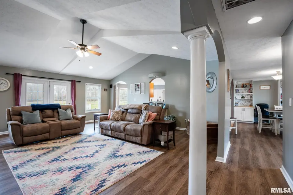 Home has been pre-inspected, any needed repairs are underway and home will soon be ready for new owners! Home has Johnston City address but children attend Herrin Schools. The sizeable great room features custom vaulted ceiling and view of the patio, deck and above-ground pool (new 2023) and expansive backyard. The large kitchen includes generous cabinetry, stainless appliances that stay, ample solid surface counter space, and connects to both an informal breakfast area and formal dining room. A pretty built-in desk with shelves has been added to the dining room. The primary suite offers trey ceilings, private bath with separate tub and shower, large walk-in closet and an additional linen closet. Newer flooring runs throughout the main living areas and bedrooms, including luxury vinyl tile added in 2024 in the living room, dining room and 3 bedrooms. In 2026, the primary bedroom received new flooring and fresh paint, along with new paint in the laundry room. Updates include an expanded deck (2023), KitchenAid dishwasher (2023), new sump pump (2024), rock & fresh mulch landscaping and new refrigerator (2025). Oversized 3-car garage completes this move-in ready home.
