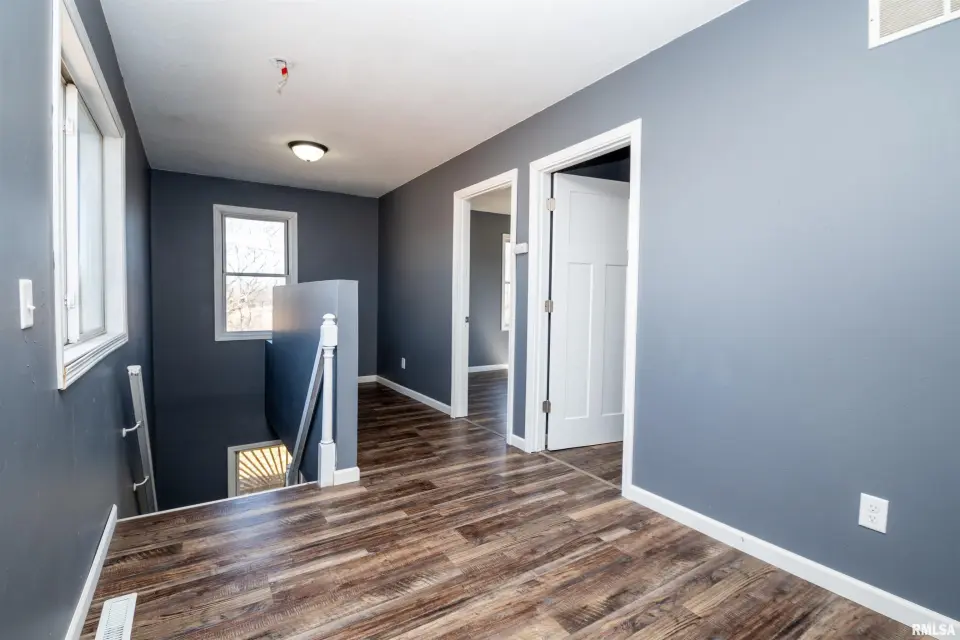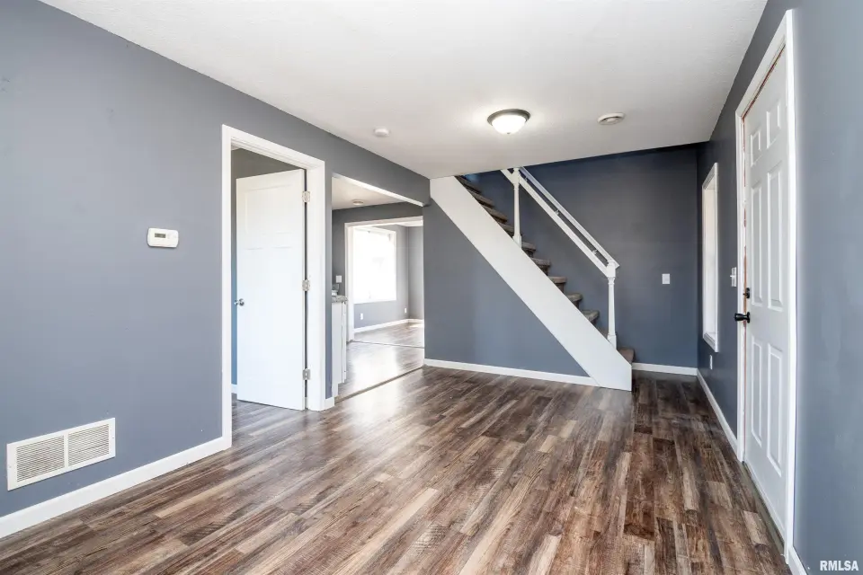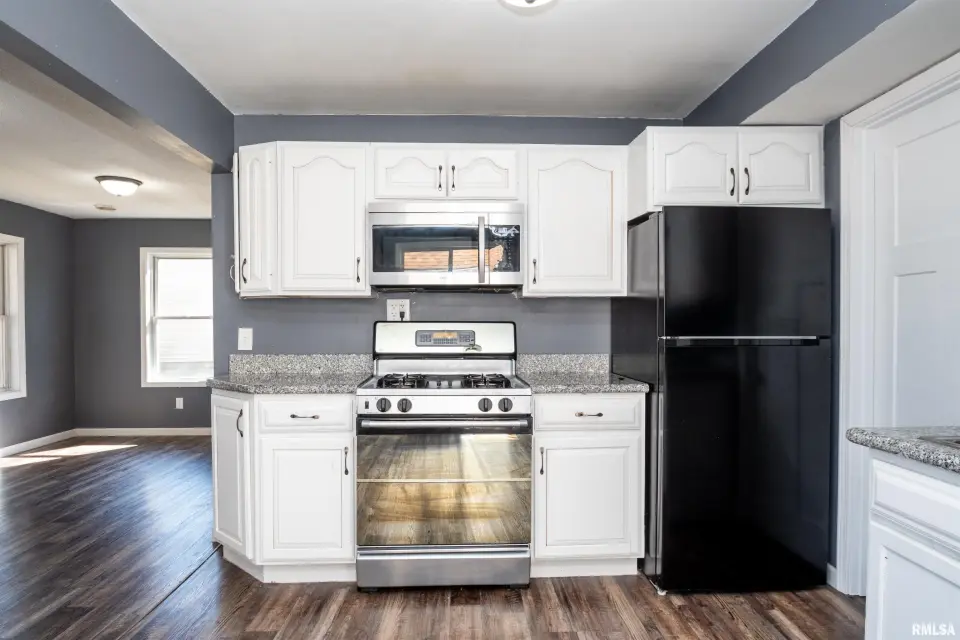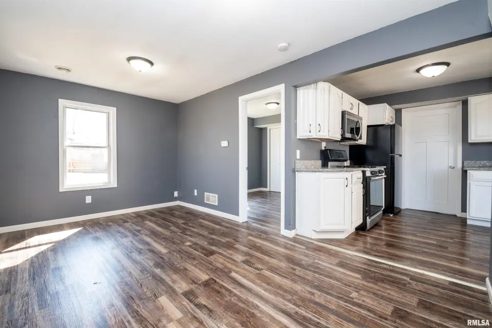 Relax and enjoy the surroundings from the large wrap-around front porch—perfect for morning coffee or unwinding in the evening. Inside, the main floor features spacious living room, informal dining room, kitchen and primary bedroom for easy one-level living. Upstairs you'll find two additional bedrooms along with a versatile bonus space at the top of the stairs—ideal for a home office, playroom, or additional living space. Recent updates include luxury vinyl plank flooring throughout, painted kitchen cabinetry, and beautiful granite countertops.