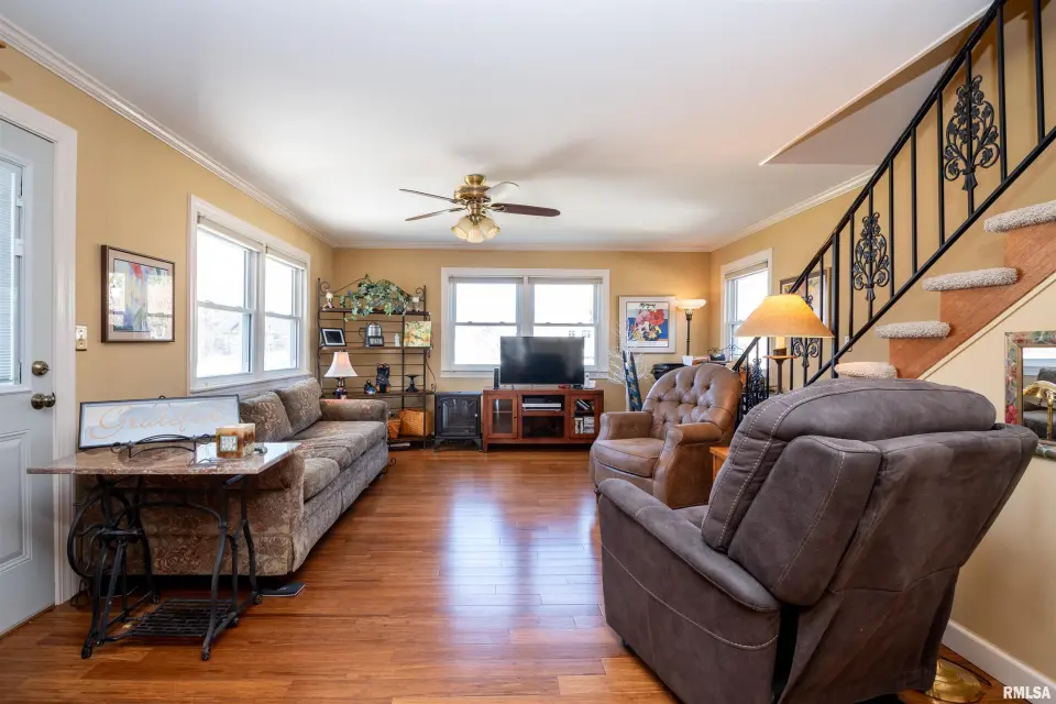 Step inside to find hardwood flooring throughout the main level and multiple living spaces, including a spacious living room with fireplace and abundant natural light, along with a bonus family room that provides great flexibility for relaxing or entertaining. And that's just the beginning! The main level also features two generously sized bedrooms, a formal dining room with built-ins, an updated bathroom with tiled shower surround and flooring, and an updated fully applianced kitchen with tiled backsplash and bonus pantry for additional storage. The upstairs offers the 3rd bedroom along with additional attic storage space. The clean, dry basement includes a flex room, 2nd full bath, laundry area (washer and dryer stay), and plenty of room for future finished space or storage. A dewatering system was installed in Fall 2025, providing added peace of mind for the new owner. Step outside to enjoy the spacious patio with fire pit overlooking the fully fenced, landscaped backyard, perfect for outdoor entertaining. Lovingly maintained for more than two decades, this charming home is now ready for its next chapter!