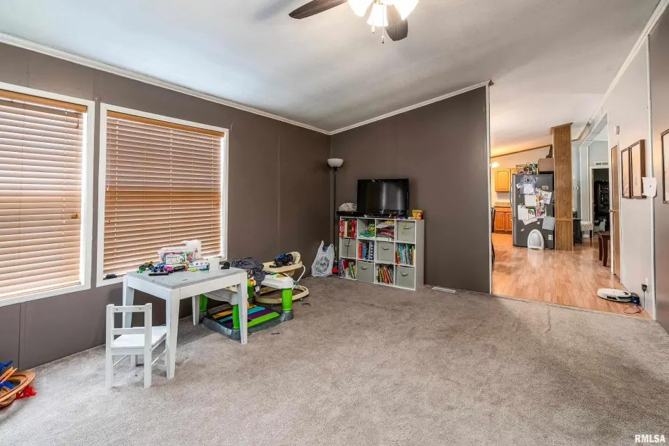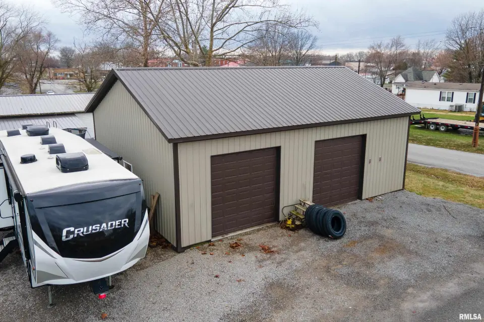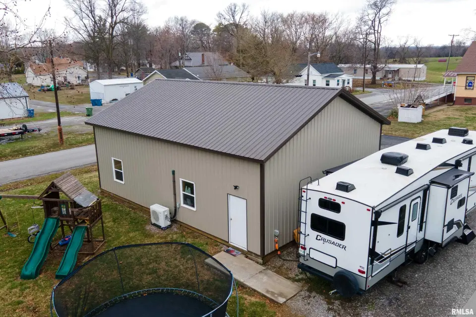 Kitchen appliances are newer and are staying. In addition to the large living room, there is a separate family room, perfect for entertaining or a great space for the kids to hang out! Metal roof was installed in 2023, insuring years of maintenance-free living. A covered patio was added at the same time, creating a great space for grilling and outdoor dining. Behind the home is a 30x40x12 pole barn, complete with concrete floor, 1/2 bath, heat and AC. This is a fantastic shop/hang-out!! Get an appointment soon! If you are dreaming of a spacious, comfortable home with outside living spaces and a pole barn....do not miss this very affordable option!!