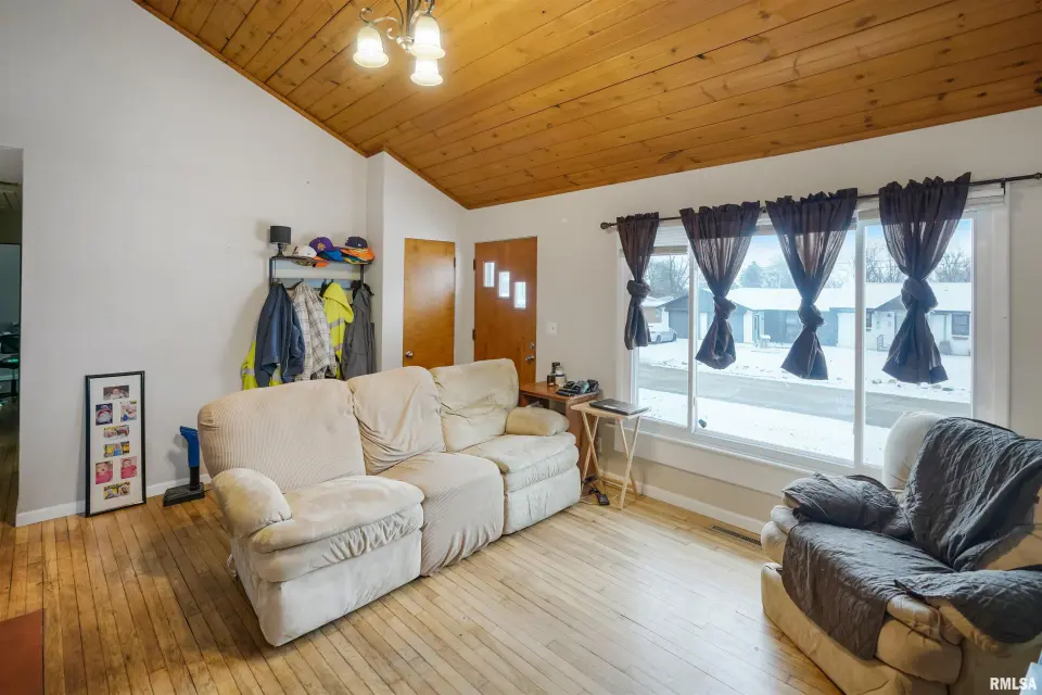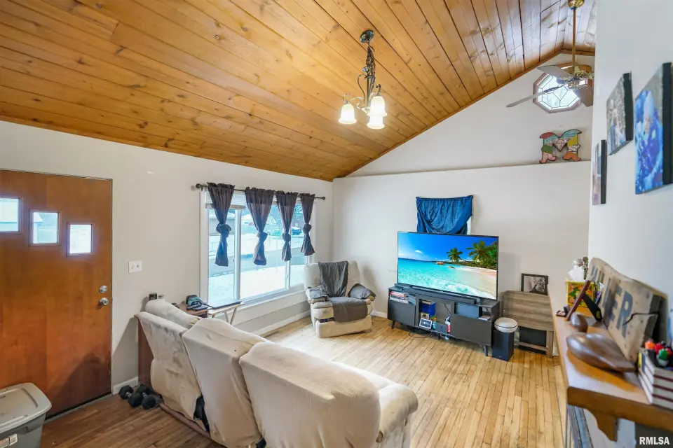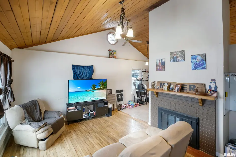 Inside, you'll appreciate the warmth of hardwood floors and the open feel created by vaulted ceilings. The living space is highlighted by a beautiful gas log fireplace, creating a cozy focal point for relaxing or gathering. The updated bathroom adds a fresh, modern touch, while main floor laundry provides everyday convenience. Situated on a generously sized corner lot, the property also features an oversized two-stall garage with plenty of room for parking, storage, or hobbies. With its appealing features and functional layout, this home offers a wonderful opportunity to enjoy comfortable living in Chillicothe.