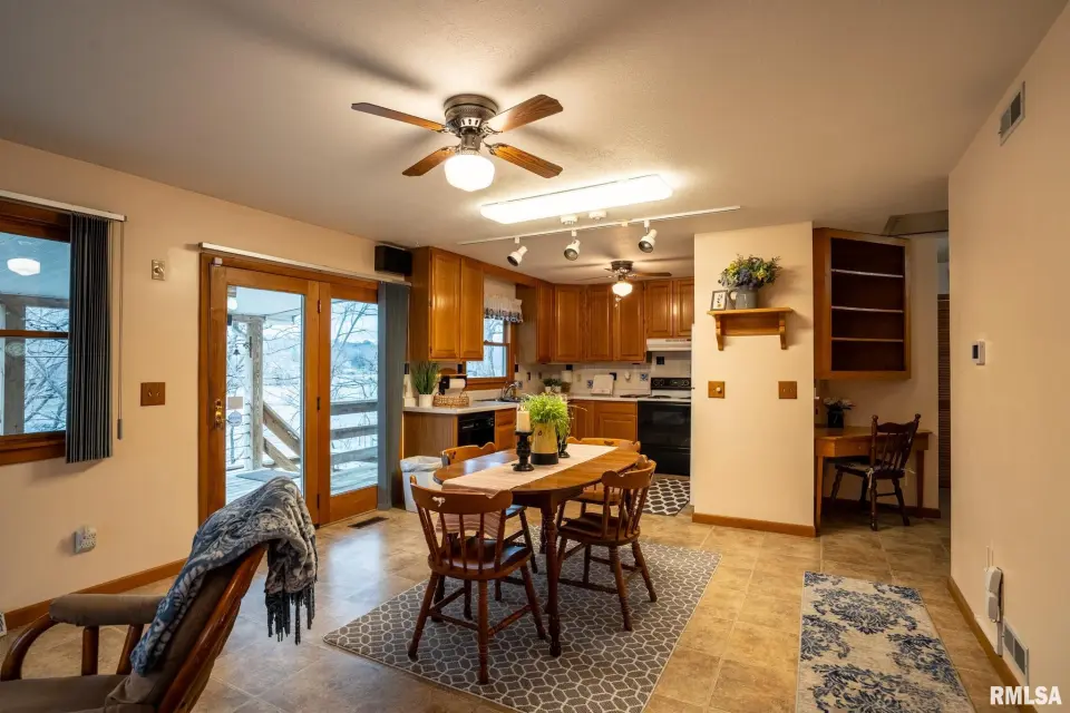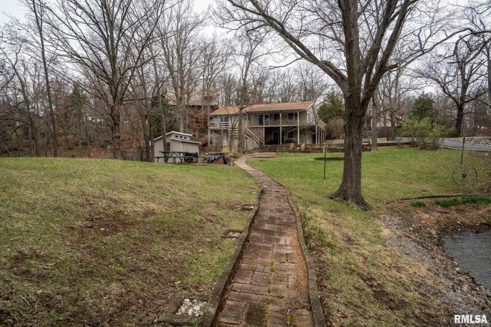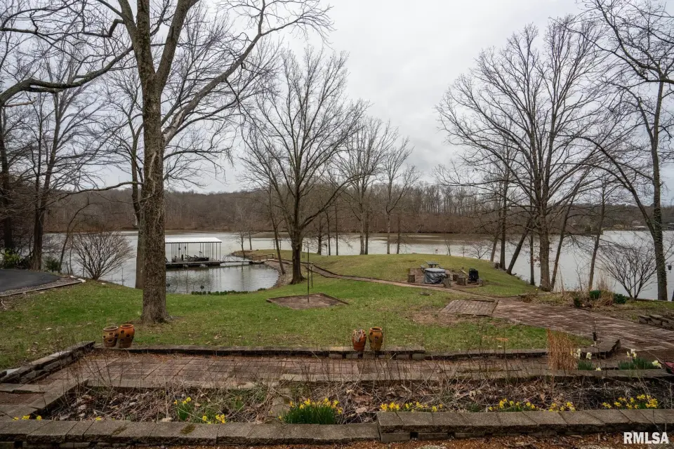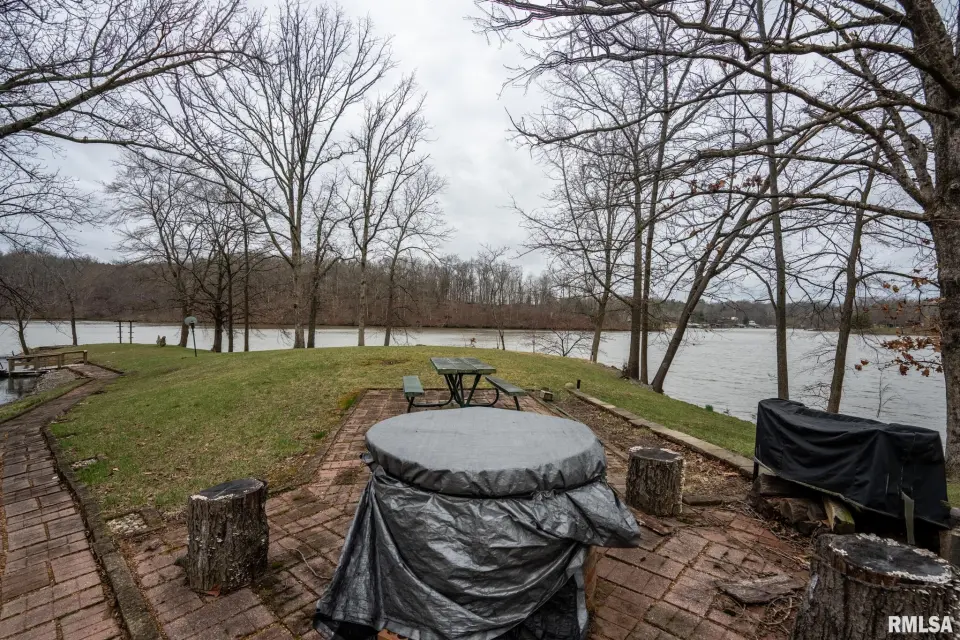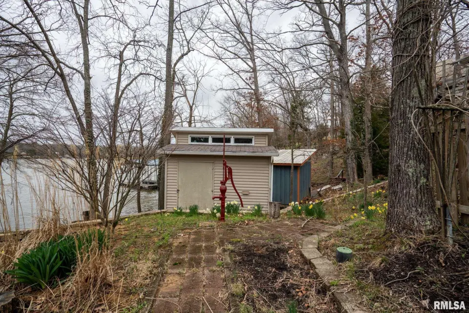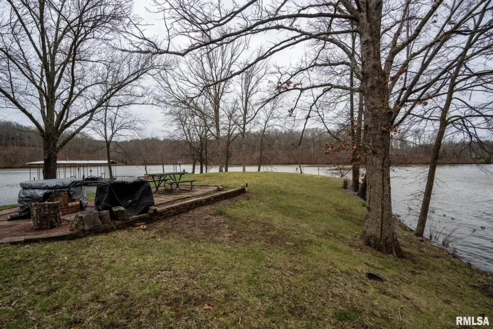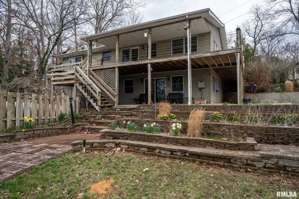 Tucked into a quiet private cove, this property sits on its own peninsula of shoreline in Eagle Point Bay, providing stunning water views from nearly every angle and a peaceful setting perfect for relaxing or entertaining. The home features 3 bedrooms, 3 bathrooms, and nearly 2,500 square feet of finished living space with 1,248 sq ft on the main level and 1,236 sq ft on the walkout lower level. A spacious wraparound deck overlooks the lake, creating the perfect place to enjoy morning coffee, sunset dinners, and lake life at its best. Designed with versatility in mind, the home includes two kitchenettes—one on each level, making it ideal for short-term rental potential or separate upper and lower living spaces. Short-term rentals are allowed, offering excellent opportunities for investment income or hosting guests. Step outside to your covered two-slip boat dock, perfectly positioned in the protected cove for easy lake access and calm water. Additional highlights include a 520 sq ft garage, cellar space for storage and storm safety, and a shed with electricity. Major improvements provide peace of mind, including a new roof in 2020 and central HVAC systems installed in 2021. Whether you're looking for a private lake retreat, full-time residence, or income-producing lake property, this Lake of Egypt gem offers a unique combination.