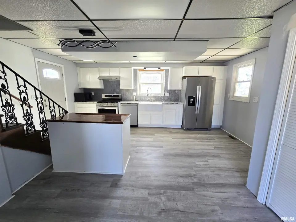 Many updates have been done. Put your personal touch on this home. Some materials are there for some finishes. List of updates: Newer furnace, central air, water heater. All new floor coverings. Main level is luxury vinyl plank-upper level is carpeted. Newer wiring with 200 amp breaker box and PEX plumbing. Newer bathroom finishes, new kitchen cabinets and granite countertops. Small island in the kitchen. Large front and back porches. Shed in backyard stays. New range, refrigerator, and dishwasher stay, NOT WARRANTED. Age of the microwave unknown. Alley access. Carport on North side of house. STRICTLY SOLD "AS IS".