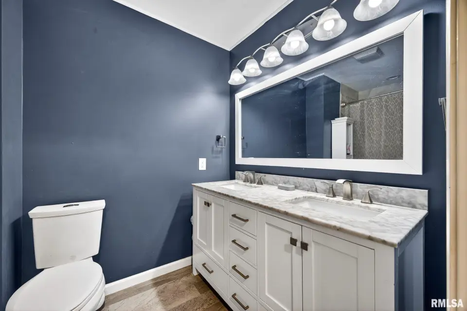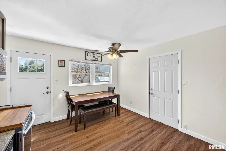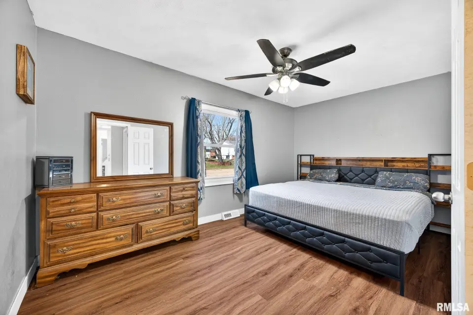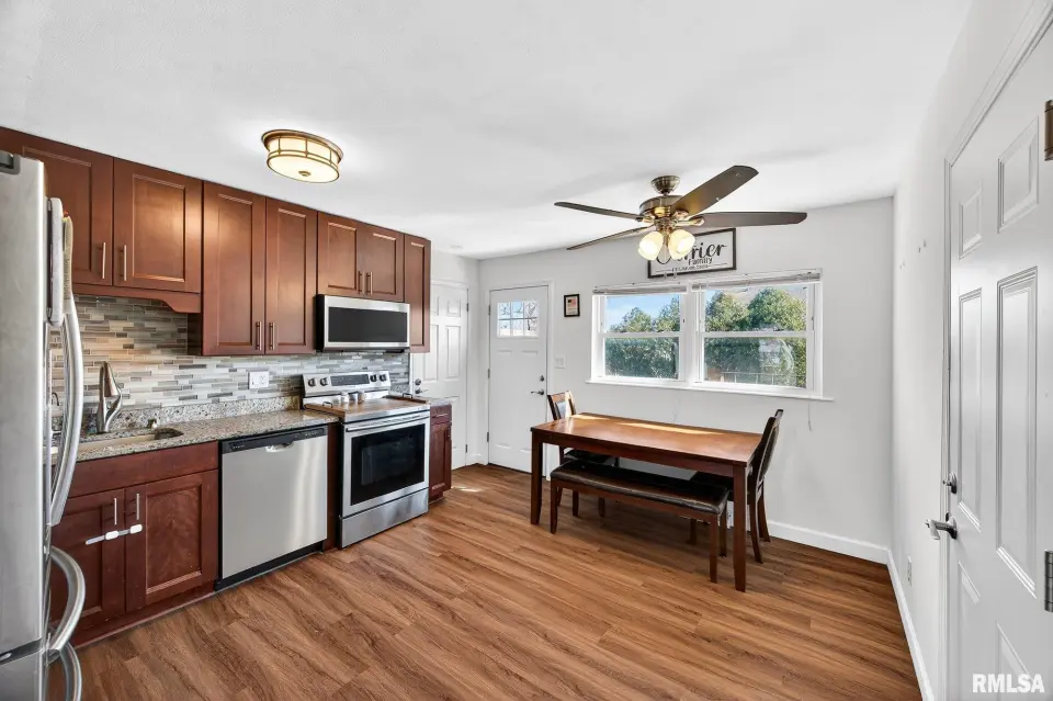 Step inside to a bright living room featuring updated flooring, fresh paint, and modern light fixtures that continue throughout the main floor. The eat-in kitchen has been nicely updated with newer cabinets, stainless steel appliances, backsplash, updated flooring, paint, fixtures, and an R/O system. All main floor bedrooms feature updated flooring and paint, and the full bath includes a newer double vanity, mirror, fixtures, and a towel warmer. The finished basement provides additional living space with a comfortable family room perfect for entertaining, hobbies, or a second living area, along with a rec room that is currently used as a play room for the kids. Outside you’ll find a fenced backyard with patio space, garden area, fire pit, and a storage shed, offering plenty of room to relax or entertain. Move-in ready and conveniently located, don’t miss this one!