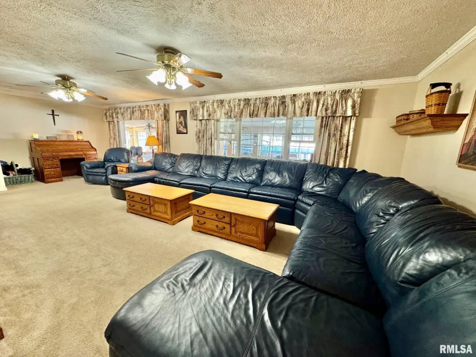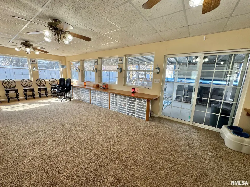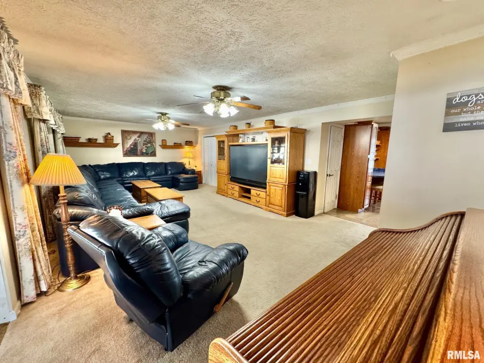 MAIN FLOOR LAUNDRY ROOM. GREAT FLOOR PLAN ON THIS EXPANDED RANCH. LARGE MASTER SUITE W/ DOUBLE CLOSETS & PRIVATE BATH. 2 MORE SECONDARY BEDROOMS WITH DOUBLE CLOSETS ON MAIN FLOOR. HUGE 47 FOOT GREAT ROOM IS PERFECT FOR AT HOME BUSINESS, DAYCARE, OR HOME SCHOOLING. KITCHEN HAS DUAL CABINET PANTRIES, WALKIN PANTRY, AND BREAKFAST BAR. LL IS FINISHED WITH ANOTHER ROOM & WALKIN CLOSET. NEW ELECTRICAL PANEL, TANKLESS WATER HEATER, REPLACEMENT WINDOWS, EXTRA STORAGE, AND EV CHARGING STATION FOR YOUR ELECTRIC VEHICLE IN 3RD STALL OF GARAGE. 3RD STALL GARAGE HAS GARAGE DOORS AT EACH END ~ COULD HAVE 2 CARS TANDEM IN 3RD STALL GARAGE. 51 FOOT COVERED PATIO HAS PLENTY OF ROOM FOR ENTERTAINING AND OVERLOOKS FENCED YARD WITH 30 FOOT SWIMMING POOL & SHED. WORKING HOT TUB STAYS WITH HOUSE. SO MANY EXTRAS WITH THIS HOME.