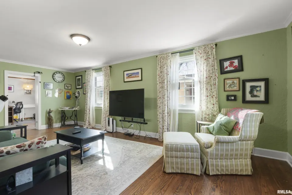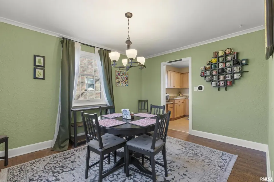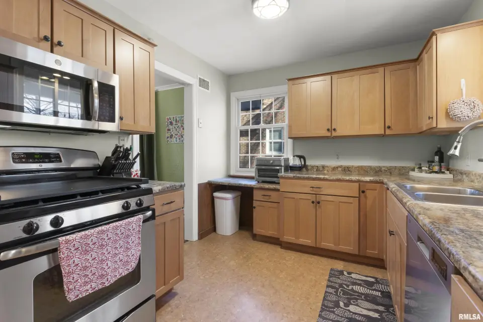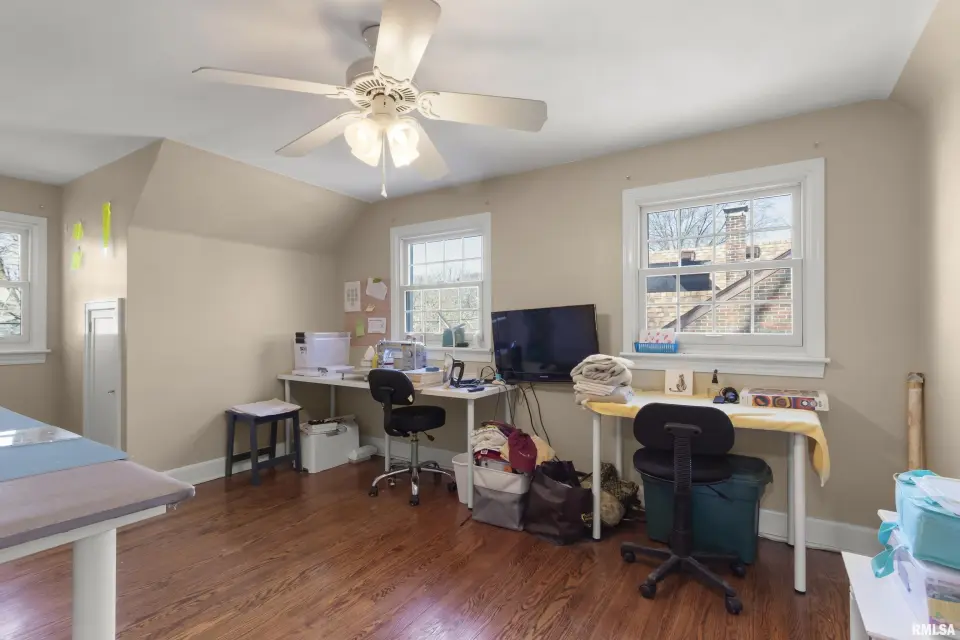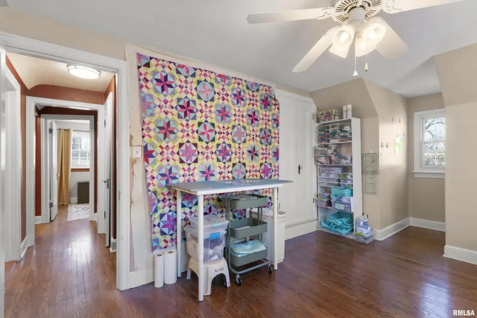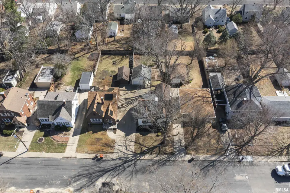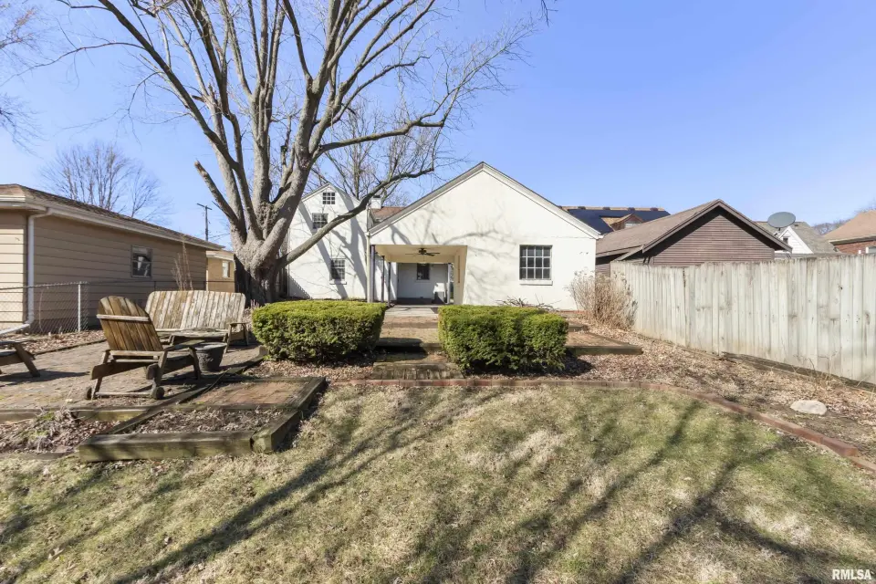 The living room is warm and inviting with plenty of space to spread out and relax. Just off the living room is a great bonus space that works perfectly as a home office, hobby room, workout area, or playroom—whatever life calls for. Nearby you’ll find a convenient powder room and a thoughtfully updated kitchen featuring cork floors and generous counter space. The kitchen opens to a formal dining room that connects back to the front entry, creating a layout with excellent flow throughout the main level. Upstairs you’ll find three well-sized bedrooms, charming dormer windows that create cozy nooks, and an updated full bath. Each bedroom offers hardwood floors and surprisingly generous closet space. The finished basement expands the living space even further with a large family room, a second full bath, laundry area with utility sink, and additional storage. Outside, the backyard feels like its own private retreat with mature trees, established landscaping, multiple brick patio areas, and a covered patio off the one-car garage—perfect for relaxing or hosting on warm evenings. Conveniently located in the heart of Peoria with easy access to key roadways, this home blends classic charm, practical space and everyday comfort in all the right ways!
