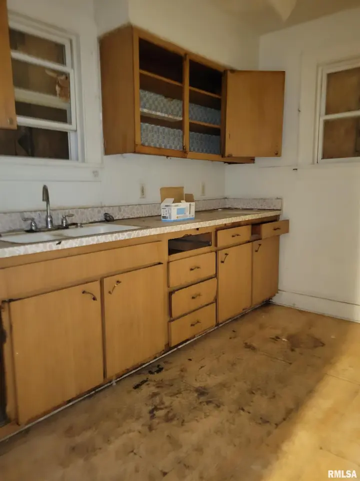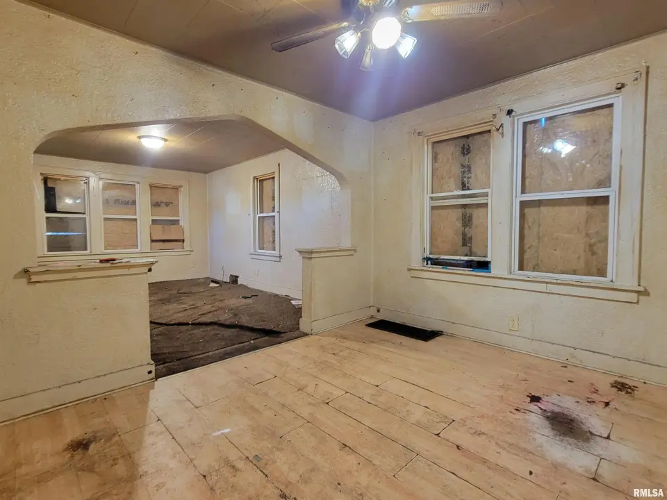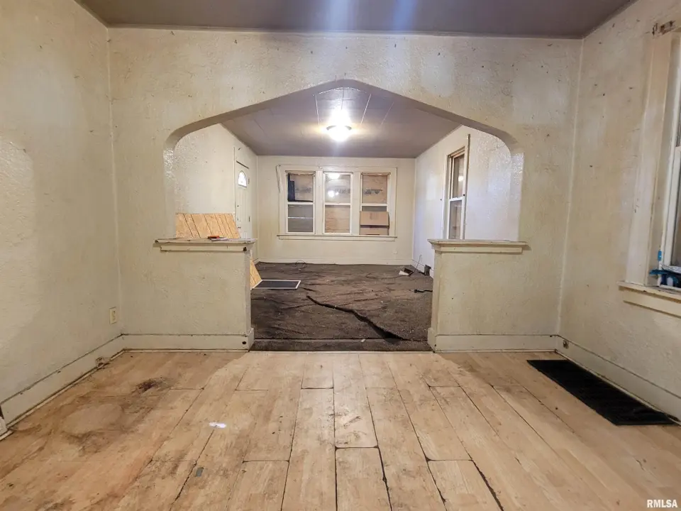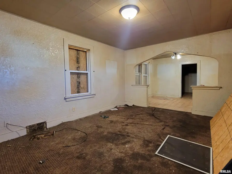 Nice floor plan with an open living & dining room, separated by a large arch, updated electrical service, and vinyl siding is in good condition. Price reflects work needed. Please see the letter from the City of Pekin in the associated docs. There's also plenty of off-street parking.