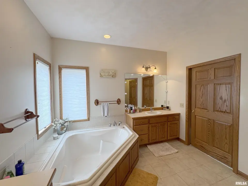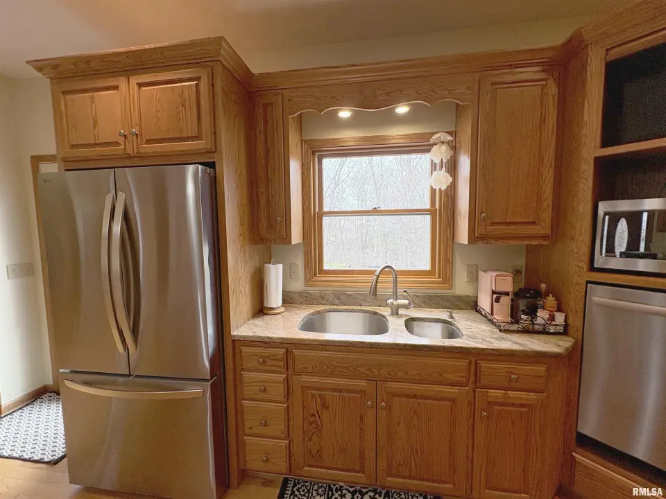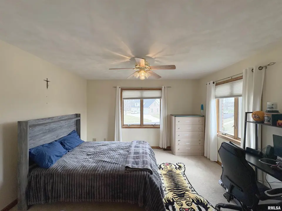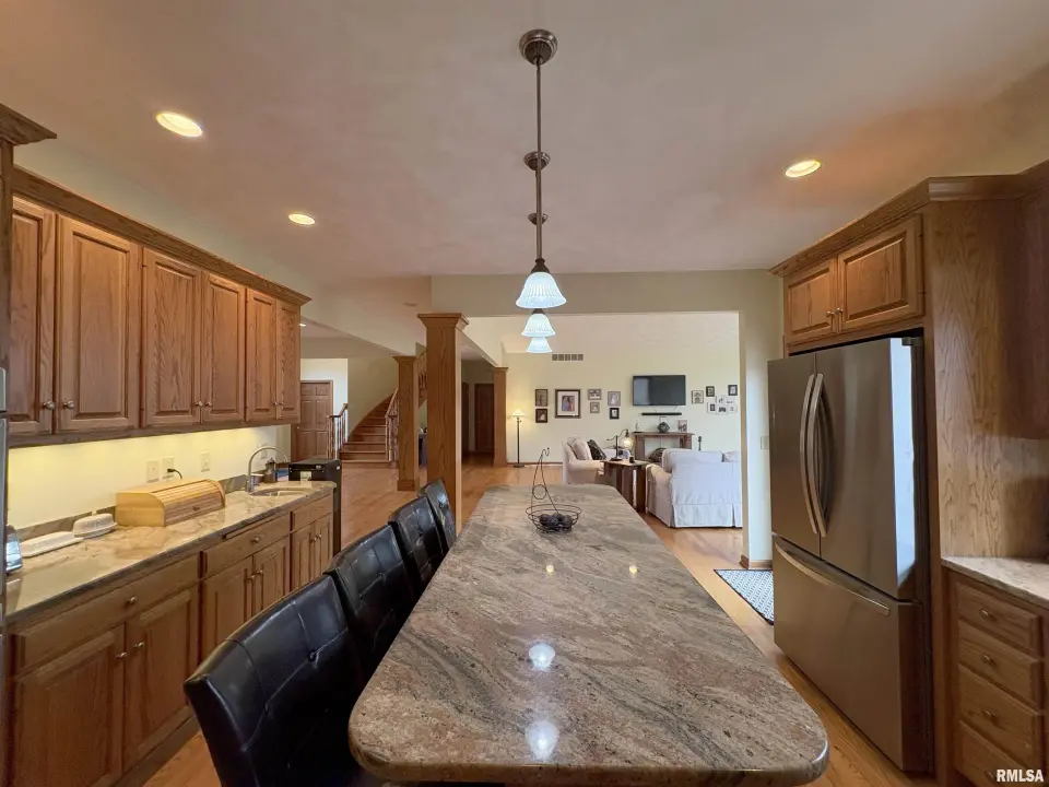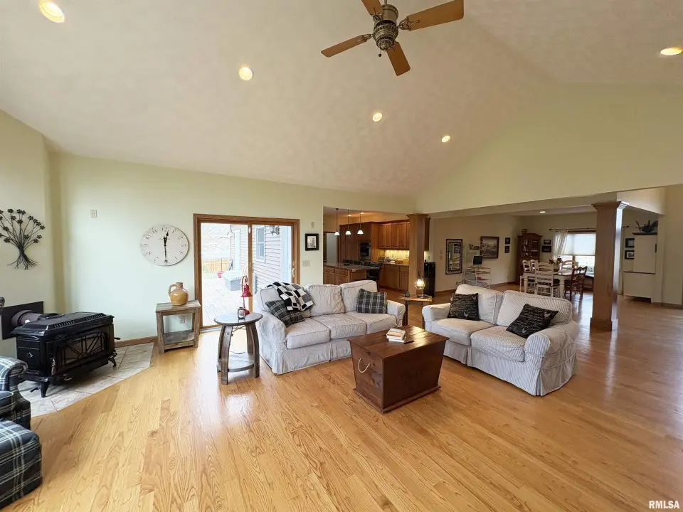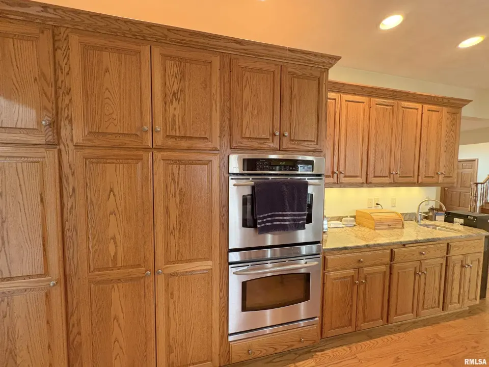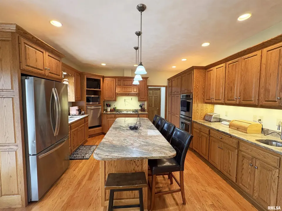 **COMING SOON** Prepare to be impressed by this Tim Beutel custom-built 5BR/4.5BA masterpiece nestled on nearly an acre with wooded privacy behind. With over 3,300 square feet of living space, this home was built to last and built to love. Step through the grand 2-story entry foyer, where a sweeping curved staircase & motorized chandelier set the tone for what lies ahead. The great room stuns with soaring 14’ cathedral ceiling, a Waterford wood stove & an exterior retractable awning for comfortable living. The oak kitchen delivers serious culinary charm with an island breakfast bar, granite countertops, double ovens (one is convection), a gas range with pot filler faucet and a wet bar area. The main floor primary bedroom suite features a spa-like bathroom & custom walk-in closet, while a 5th bedroom doubles perfectly as a home office. Three additional bedrooms & a full bathroom await upstairs, and the partially finished lower level offers even more potential. Quality craftsmanship shines throughout - custom oak hardwood floors, solid interior doors, Andersen windows, lighted closets plus oak trim & cabinetry. Energy-efficient geothermal heating & cooling across 3 zones. Convenient main floor laundry room. New shingles were installed in 2024. 3-stall side-load garage also includes a 2nd basement access. 14x26 deck. Custom designed landscaping with an English Knot Boxwood garden. Oak Ridge Park, grocery stores, Walmart, Menards, eateries and numerous conveniences nearby!