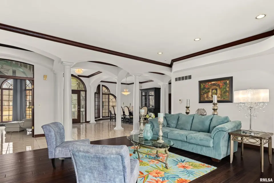 This all-brick residence sits gracefully on a lovely one-acre lot. A beautiful salt water pool, surrounded by professional landscaping, creates a private backyard retreat. The pool liner was replaced 3 years ago, & heater, pump, filter, and cover updated within last 2 years, offering peace of mind & low maintenance enjoyment. The grand foyer opens to spacious living & dining rooms, an entertainer’s dream. The heart of the home is the huge chef’s kitchen with abundant cabinetry, new double ovens, & ample work space, & it opens to a sunny breakfast nook and comfortable family room. The spacious primary suite, featuring two custom walk-in closets, is a private sanctuary designed for relaxation and everyday luxury. The walk-out lower level expands the home’s living & entertaining space with a beautiful finished layout. Features include 2 spacious bedrooms, a full bathroom, & a wet bar with 2 beverage refrigerators. The immediate access to patio & pool area creates easy indoor/outdoor living & entertaining. Car enthusiasts will appreciate the impressive 4-car garage. Located in Dunlap School District, this property is a rare opportunity for discerning buyers seeking quality and a great, convenient location.