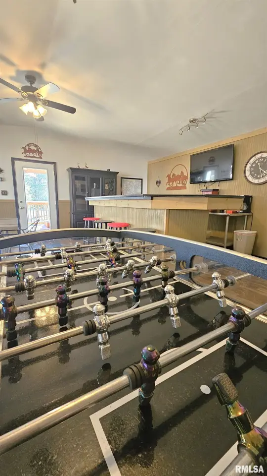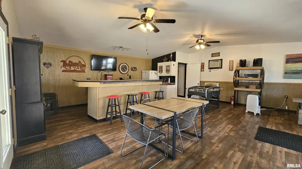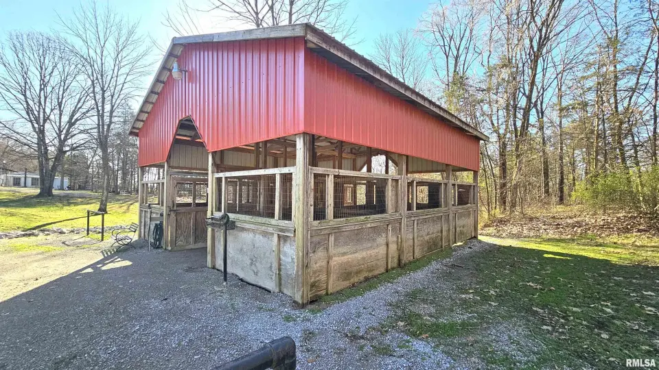 Located just minutes from Route 145 and Interstate 24, this property offers easy access to the Shawnee National Forest, horse trails, hiking, hunting, and endless outdoor adventure. The property features a 3-bedroom, 2-bath mobile home decorated with charming horse and stable-themed touches, creating a warm and welcoming retreat atmosphere. Connected by a large wraparound porch is an impressive game room and gathering space complete with a built-in bar—perfect for entertaining guests, family weekends, or group getaways. The spacious porch includes multiple seating areas and an outdoor hot tub, creating the ideal place to relax after a day on the trails. Together, the home and game room offer approximately 1,500 square feet of usable living and gathering space designed for fun, relaxation, and memorable weekends. Equestrian and outdoor enthusiasts will appreciate the approximately 900 sq ft stable with concrete floor, as well as an additional 384 sq ft pole barn for storage, equipment, or hobby space. Positioned near some of Southern Illinois’ most popular recreation areas—including Lusk Creek, Garden of the Gods, and miles of horse and ATV trails—this property is ideal as a short-term rental investment, weekend camp, hunting lodge, or private retreat.