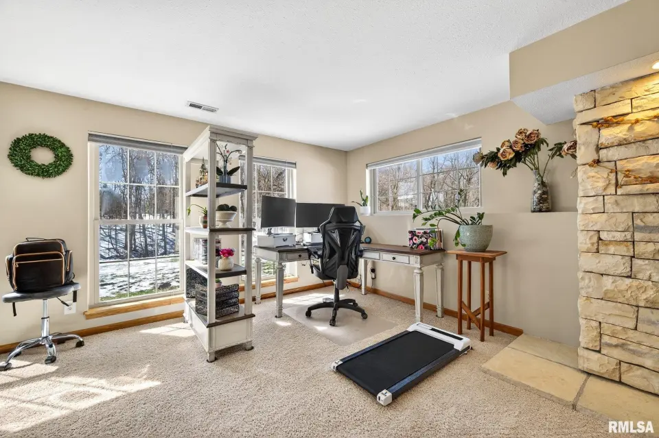 The full finished walkout basement then provides a 4th bedroom, 3rd bathroom, large open family room and rec room, a second stone fireplace, and tons of natural light. This home offers generous size living areas for everyday living or entertaining and the walkout basement adds such valuable additional space for all of your family needs or guest accommodations. But that's not it, the yard is fantastic!! With a deck off of the dining room and a patio off of the lower level family room, both really bring the outside in. The garage is heated and cooled for year-round comfort and functionality for vehicles, hobbies, or workshop space. Brand-new water heater installed in 2026. All of this AND located in desirable Fandel Farms in Germantown Hills! This property offers the perfect combination of space (inside and out), comfort, and convenience. We highly recommend you schedule your private showing soon and come see what makes 512 Bittersweet so sweet!
