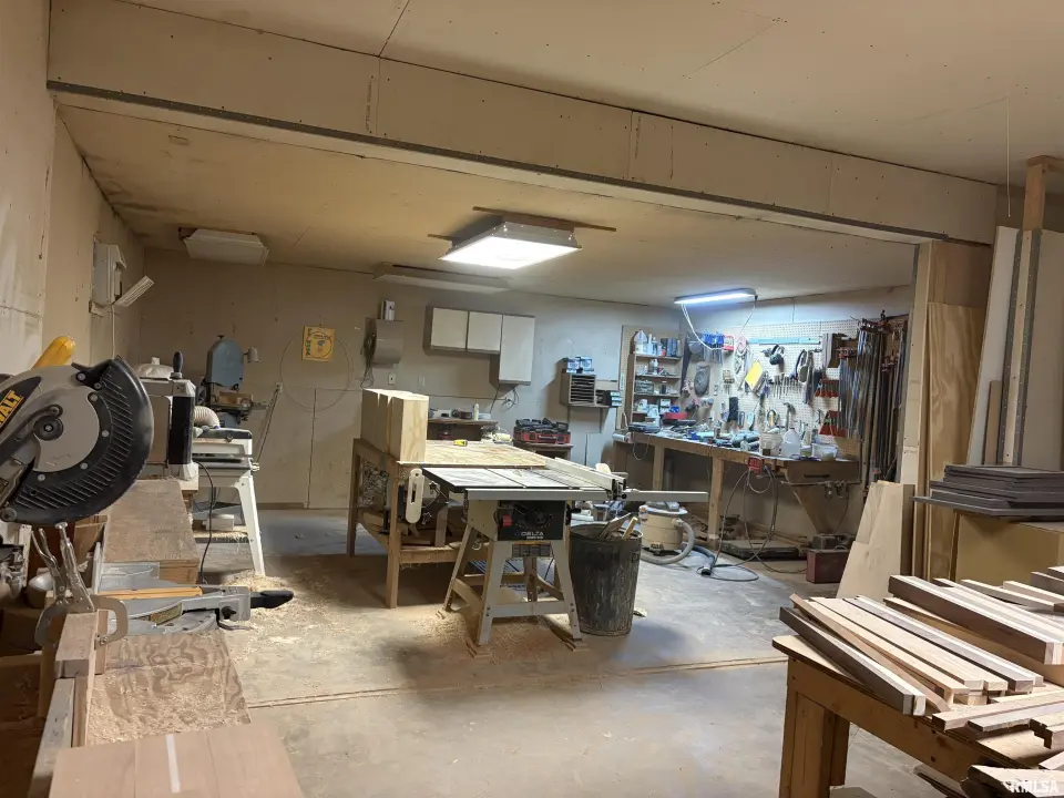 Well maintained 5 bedroom 3.5 Bath on over an acre. This property has a 48 x 70 Morton Building with a 881 sqft. shop that currently is wood working. The shop has water radiant floor heat in part of the shop that handles the whole area comfortable. Window units stays in the shop. The back patio is wonderful with 2 water feature Gold Fish ponds with a stream between them with about 75 fish that will stay. The home has a dug well that has raised 5 kids over the years just fine. The home has Reverse Osmosis system that stays. The 2nd Bedroom on main floor does not have a closet but is used for guest room but could also be a nice office. The kitchen window seal is broken and a new Pella window will be installed before closing. The county shows the main house was built in 1897. But in 1994 the house was added on to and a 2 car attached garage and total renovation was done. Between the font porch and attached garage is the well lid. Please do not remove for safety reasons. Property line in backyard is inside the decorative fence.