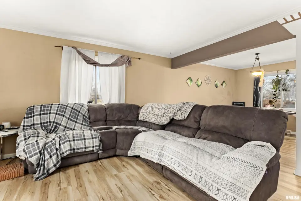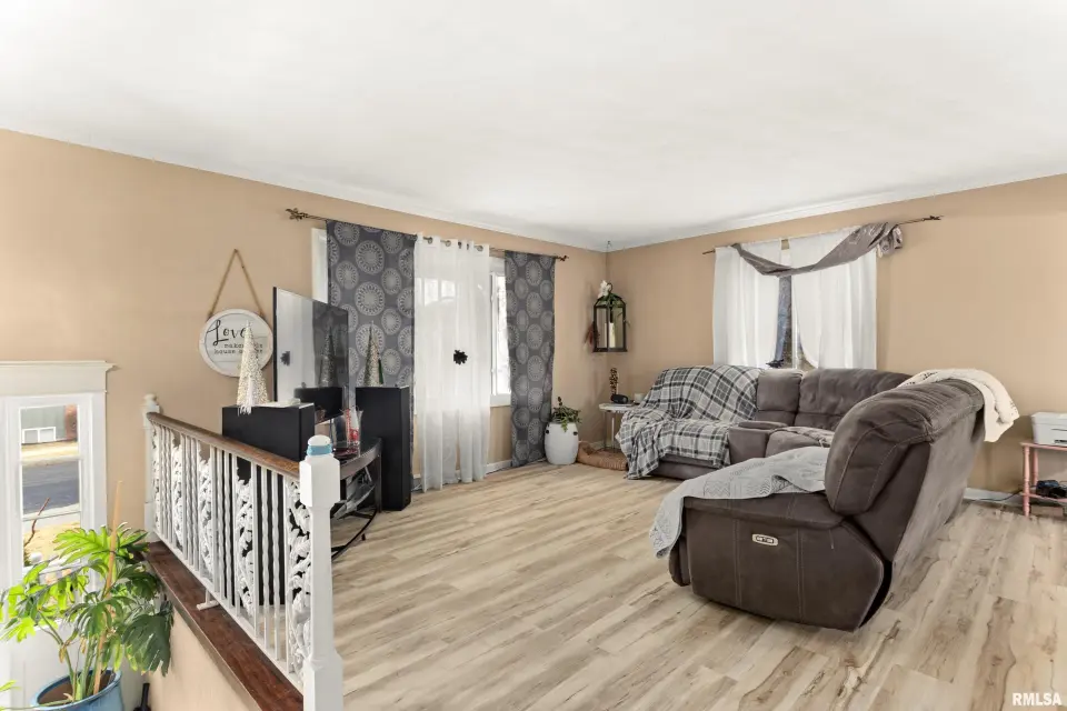 This home sits on a .27 acre corner lot. Major mechanical updates include a new energy efficient furnace (2024), A/C (2025), and Water Heater (2024). The kitchen features newer stainless-steel appliances; including an oven (2024), overhead microwave (2023), and refrigerator (2023). The main floor showcases new luxury vinyl plank flooring, while the bedrooms feature classic hardwood floors. The natural lighting creates a bright, refreshed interior. The partial basement expands the living space and includes a laundry area with an additional bathroom, offering flexibility for guests, hobbies, or a home office. Enjoy the convenience of an attached 2-stall garage and step outside to a beautiful deck just off the kitchen overlooking mature landscaping with established perennials including day lilies, sage, and impressive oversized hostas that provide vibrant seasonal color and curb appeal throughout the spring, summer, and fall. A wonder blend of updates, space, and outdoor beauty.