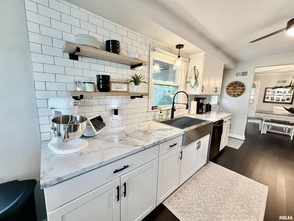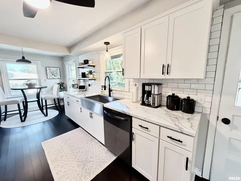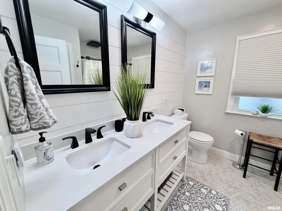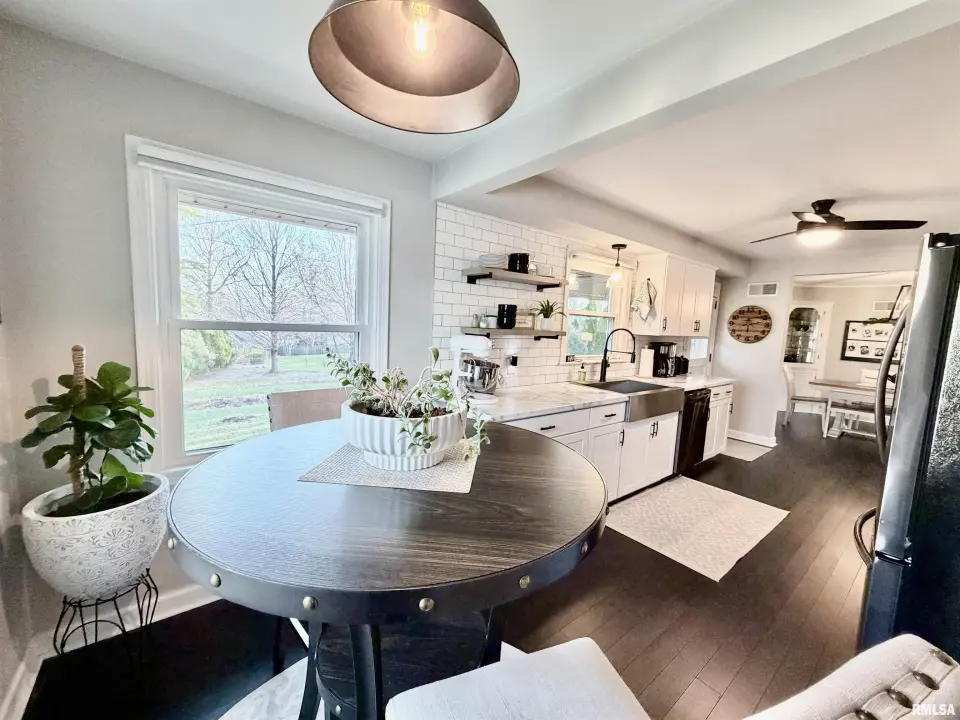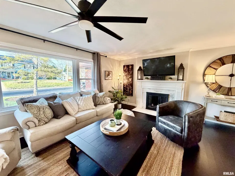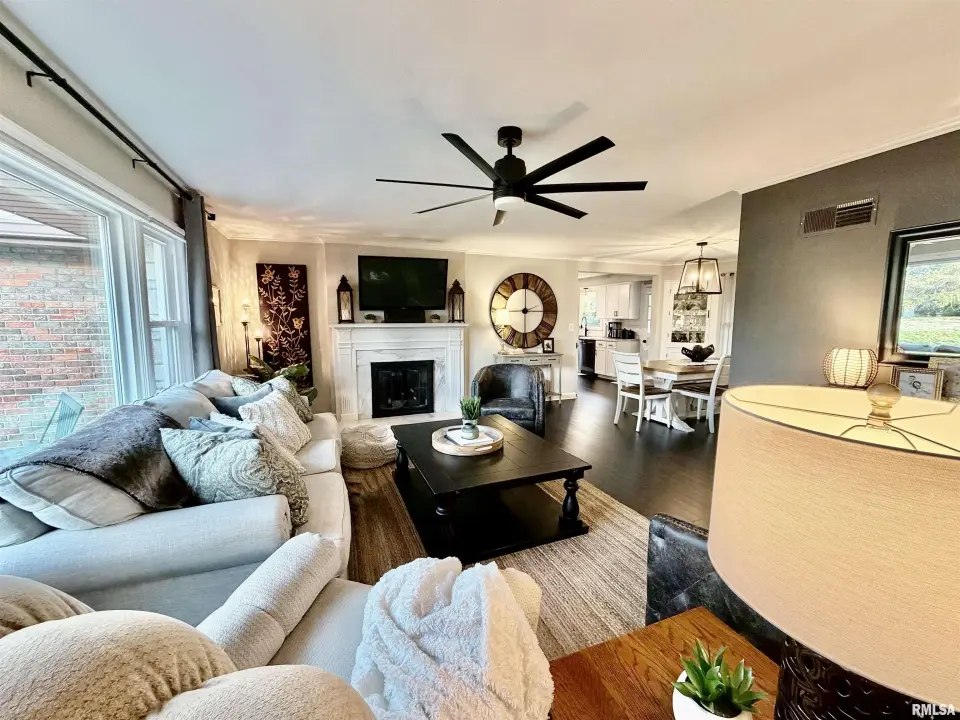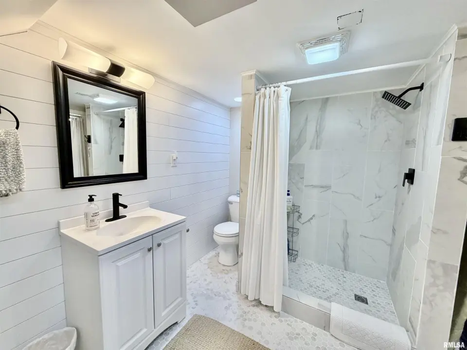 The inviting living room features a grand fireplace and oversized picture window, seamlessly flowing into the formal dining room—ideal for entertaining. The updated kitchen shines with crisp white cabinetry, modern countertops, tile backsplash, black stainless steel appliances, and a spacious pantry. The fully renovated bathroom is truly show-stopping, highlighted by a marble tile shower, quartz-topped vanity, rain shower head, newer tub, shiplap accent wall, and updated fixtures. Downstairs, the finished basement offers a versatile office area and an expansive family room accented by reclaimed wood—perfect for relaxing or hosting. Step outside to a covered back porch overlooking a private, beautifully landscaped yard. An oversized 2-car garage completes the package. New water softener. This one checks all the boxes… and probably a few you didn’t know you had. Showings to start tomorrow, 3/21.