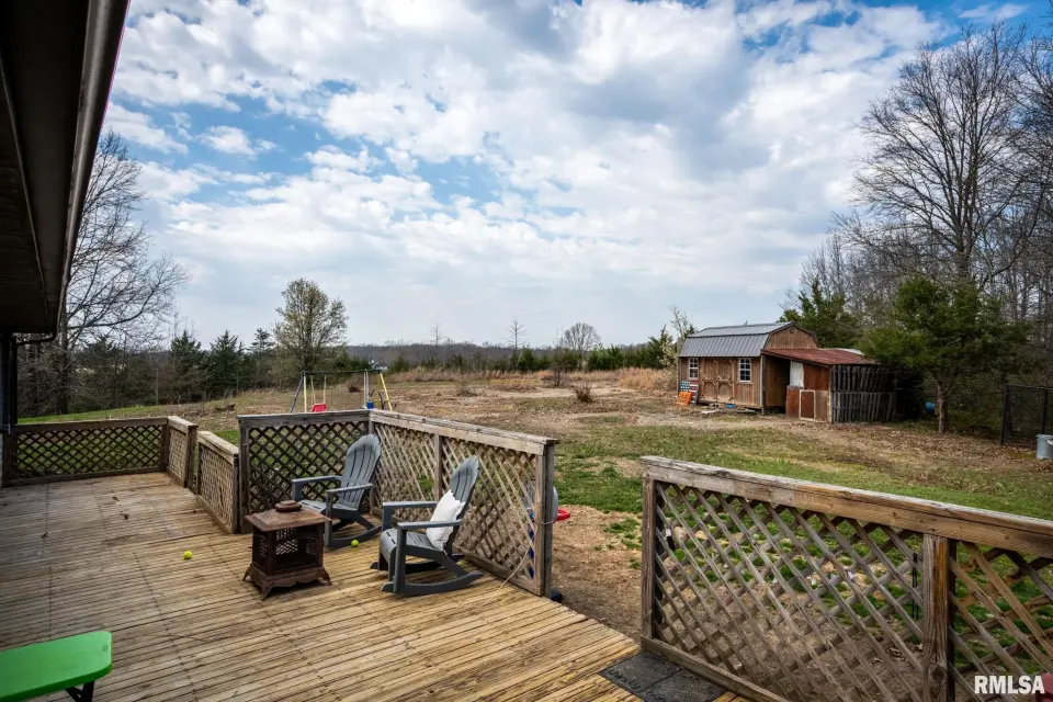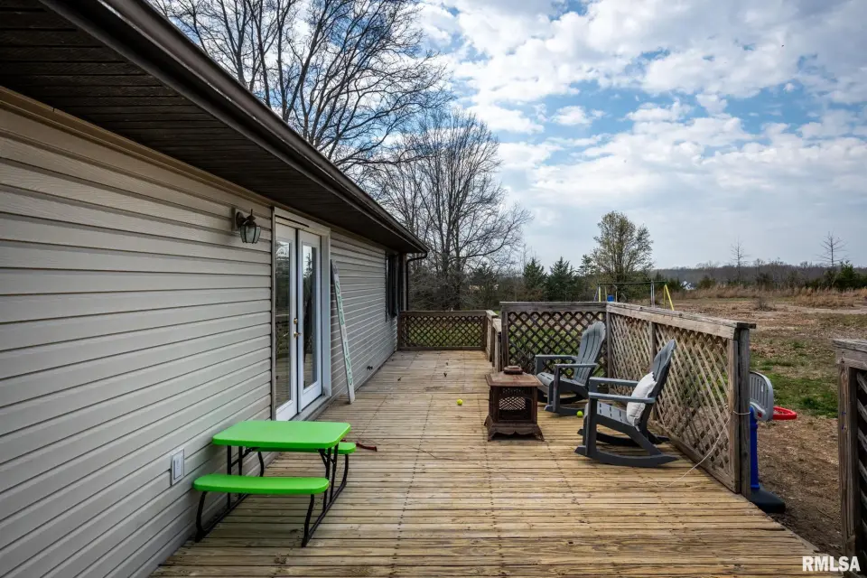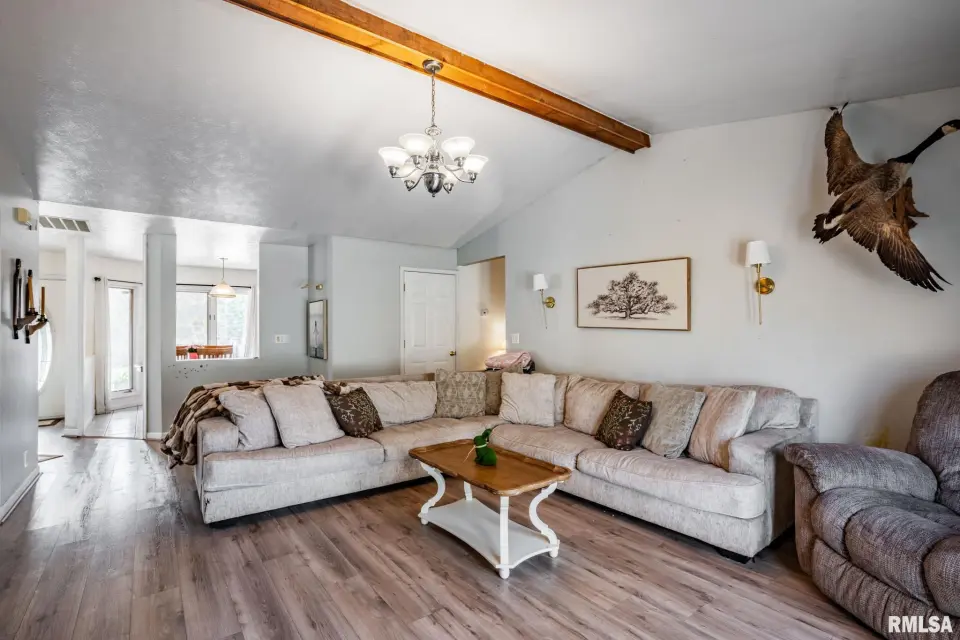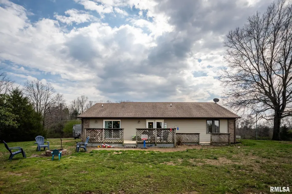 The vaulted living room features a beautiful wood beam to elevate the space. The vinyl plank flooring and patio doors, leading to a full-length back deck, were both installed 3 years ago. The kitchen offers tile flooring, fresh paint into the hallway, and appliances (dishwasher, stove, microwave, sink) updated within the last two years. A Jack-and-Jill style laundry/mechanical room provides access from both the kitchen and hall. The primary bedroom includes carpet installed 3 years ago, an en suite bath with tile, double pass-through closets, and a newer sliding door (approx. 3 years old) to the deck. Additional highlights include a formal dining room with newer carpet, brick exterior on the front and corners, and a raised garden bed. Great opportunity to add your own personal touches on over 3 acres.