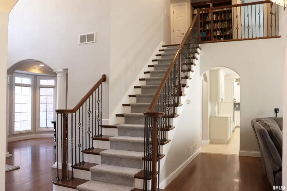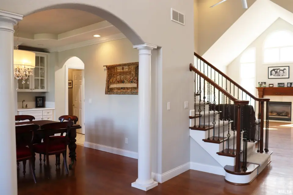 From the moment you step into the 2-story foyer, you’re greeted by impressive architectural details & a sense of scale that continues throughout. The breathtaking great room is the true centerpiece, featuring soaring ceilings & dramatic 2-story windows that fill the space with natural light while offering views of the expansive property. The top-of-the-line kitchen is a dream for both chefs & entertainers alike—with quartz ctops, island, s/s appliances, & updated cabinetry. A coffee bar with beverage fridge, serving area off the formal dining room, & extensive built-in storage make this space as functional as it is beautiful. Main floor office with built-ins offers a polished workspace. Main floor master is a true sanctuary, featuring a show-stopping walk-in closet. Upstairs you’ll find 3 BR’s, including one with a private en-suite and 2 connected by a Jack & Jill bath—one impressively oversized. The walk out lower level is designed for entertaining on a grand scale. Enjoy movie nights in the theater area, gather by the wet bar, or unwind in the expansive rec space. 2 add’l BR’s, full bath, storage room, & a hidden craft room complete the space. Step right inside from the patio & hot tub area. Outside, a large deck overlooks the landscaped yard, fire pit, & wooded backdrop—your own private retreat.