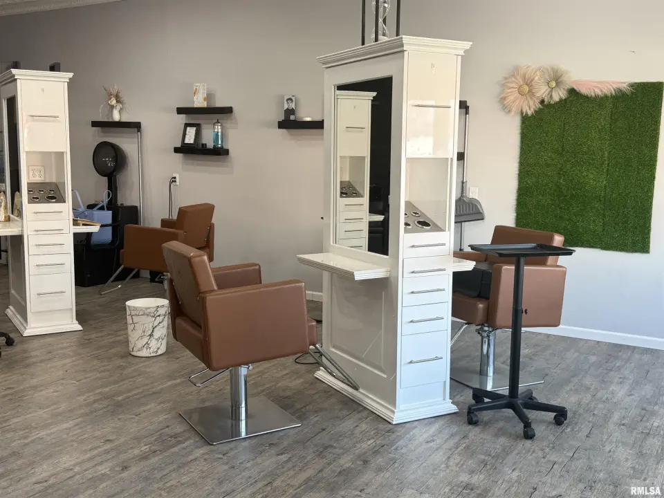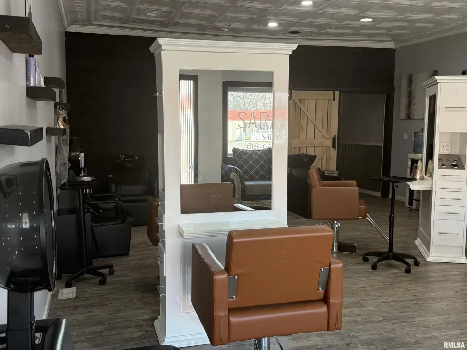 Building was completely remodeled in 2021 to a 6 station hair salon. New plumbing, wiring, HVAC, instant Hot water heater(gas)all new paint, flooring, 6 double sided stations, 3 shampoo bowls with attached reclining seats(very comfortable). 3 additional rooms-perfect for separate services. One of the additional rooms has a spray-tan booth already installed, just needs serviced. Exterior painted 2024. Screened in back porch area. City parking lot attached to the building for lots of parking. Currently has 2 stylists working. Barcom security System is installed and active.