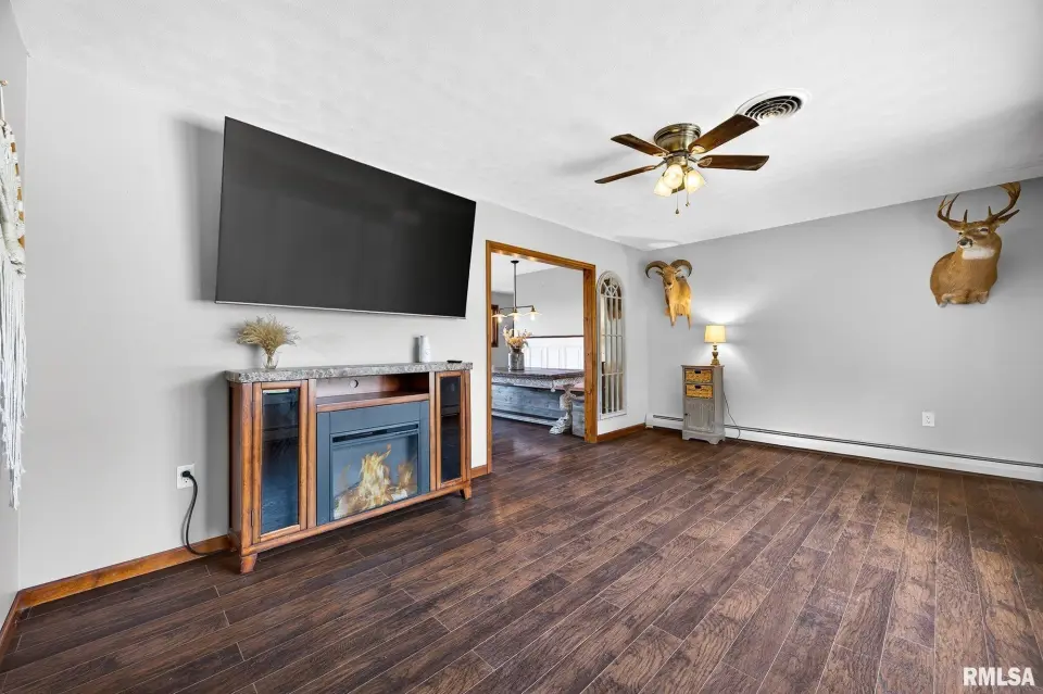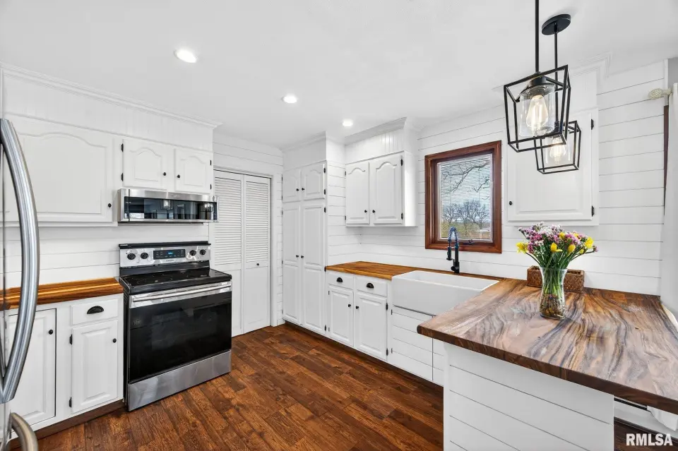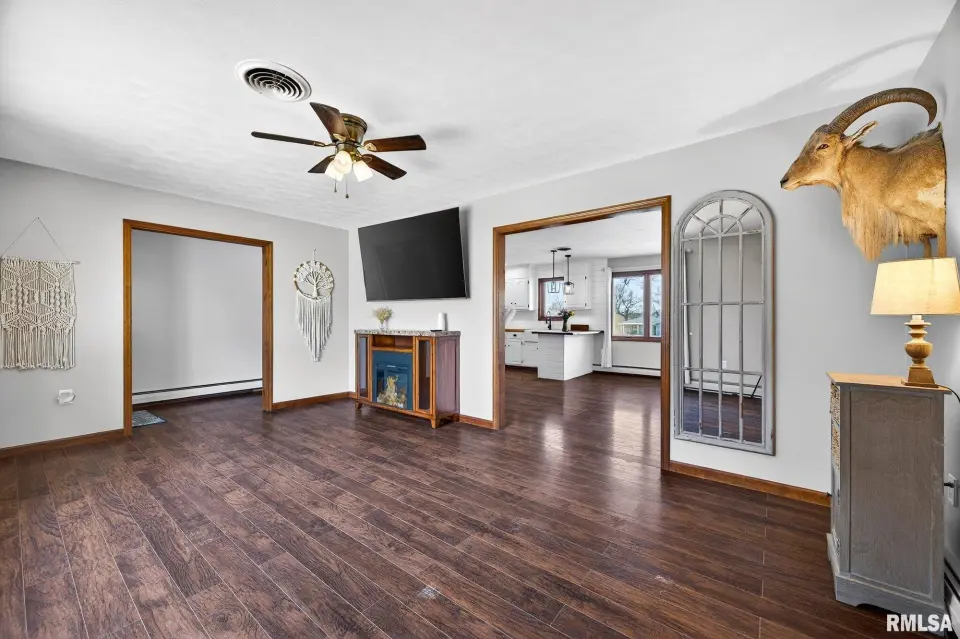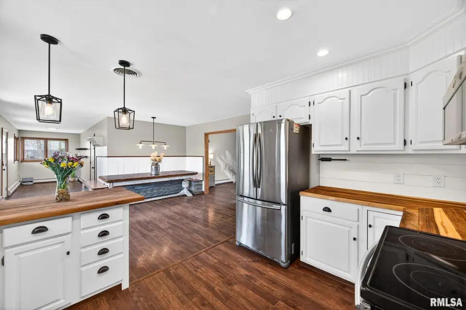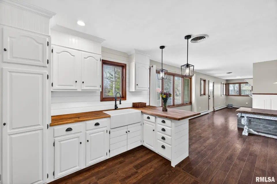 The home features a spacious living room filled with natural light, a thoughtfully designed eat-in kitchen complete with a breakfast bar, and the convenience of main floor laundry. Enjoy peaceful mornings and relaxing evenings surrounded by mature trees and scenic lake views, with direct access to a stocked lake right in your backyard—ideal for those who appreciate nature and outdoor living. Updates include kitchen remodel complete in 2020, boiler rebuilt 2024, exterior wood burner installed 2024, carpet installed 2025 and new garage doors 2024. Amenities include a heated attached garage and a chicken coop! Schedule your private showing today.