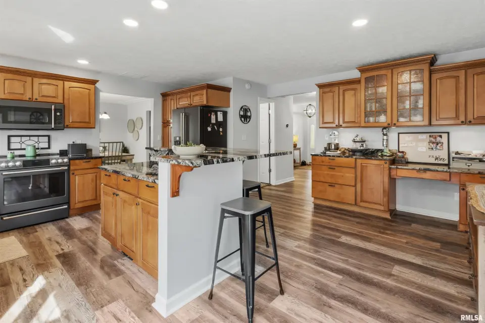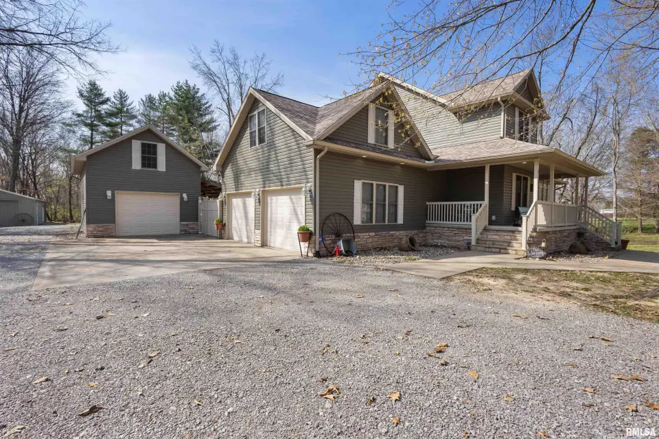 Basement also includes a perfect storm shelter area. Home is tastefully decorated and meticulously maintained. So many updates here. Roof is only 5 years old, kitchen has all new Cafe appliances with over 10k invested, all of which will remain with home including washer and dryer (garage refrigerator excluded). Every inch in home reflects exceptional care and quality craftmanship. Master suite offers professionally designed closet and the master bath includes luxurious soaking tub and large shower. Step outside to see a truly unique outdoor retreat. The fully fenced secluded pool area and hot tub offers privacy and relaxation. Detached garage includes a pool house for extra storage with a charming picnic area and firepit area perfect for entertaining. For those needing space and versatility, the impressive 40x50 pole barn is a standout feature with half being heated and cooled. In addition the property includes a two car attached garage and a detached one to two car garage, providing ample storage and workplace. this extraordinary property balances luxury, comfort and functionality-an outdoor enthusiast dream paired with a beautifully refined interior. You seriously have to view to appreciate!