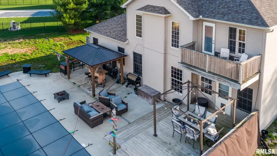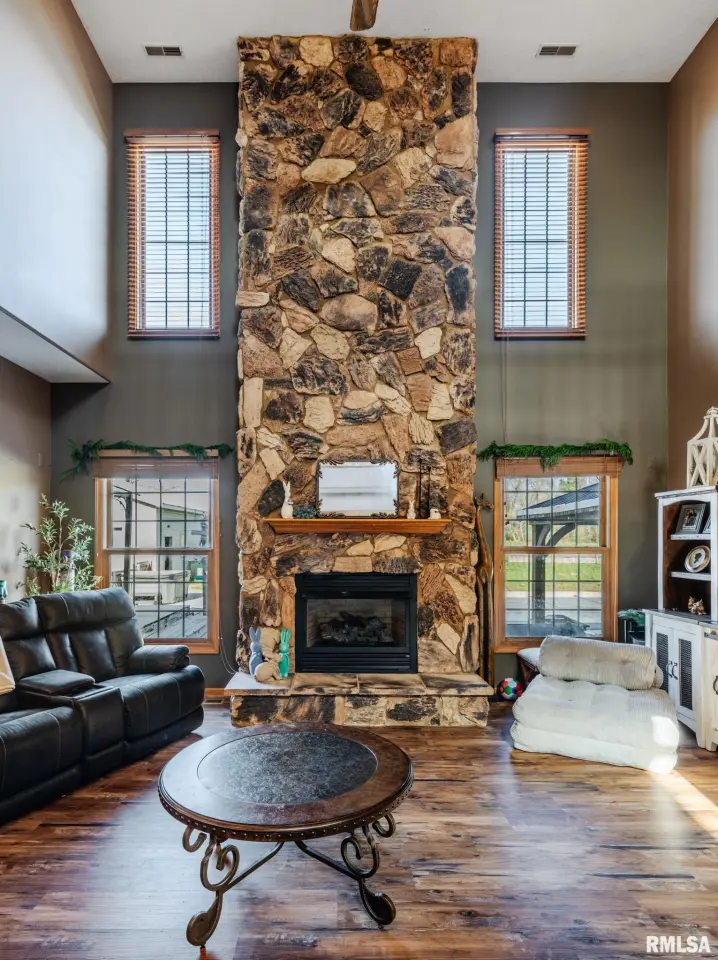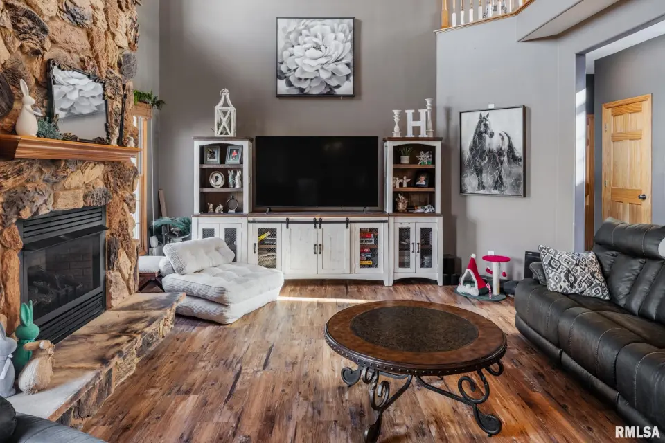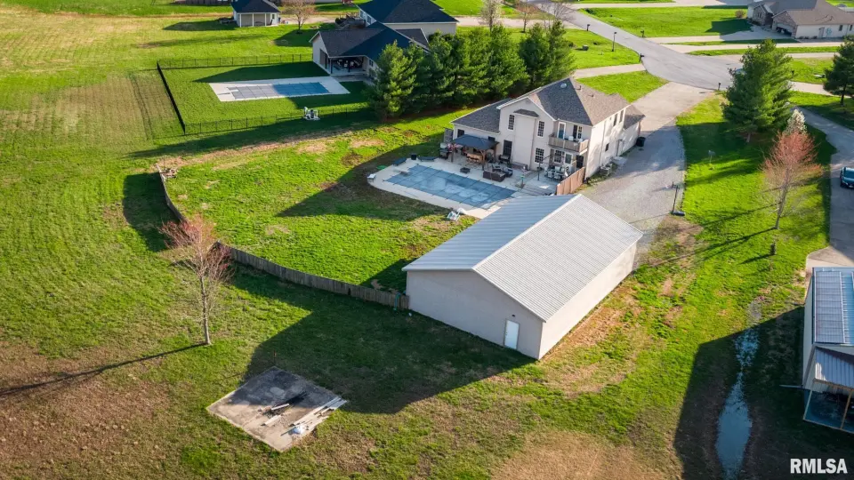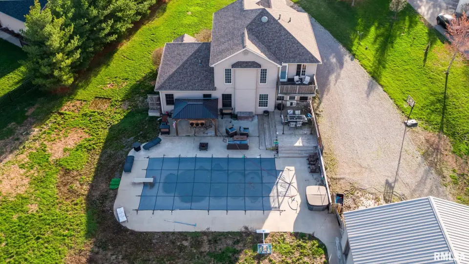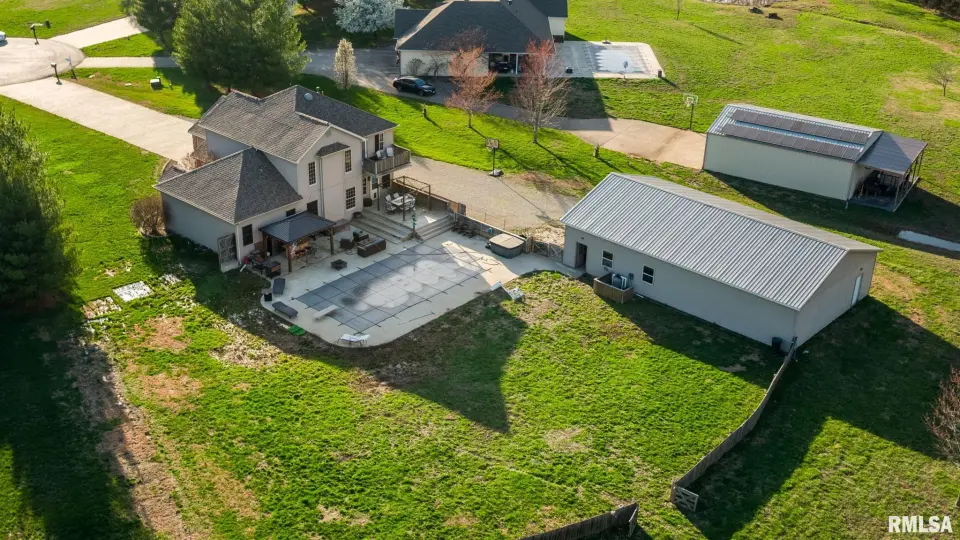 The open-concept layout highlights a beautifully designed kitchen complete with a gas stove, rich hickory cabinetry, and sleek under-cabinet lighting. In the living area, high ceilings and a warm gas fireplace create a welcoming space perfect for relaxing or entertaining. The main floor features an elegant primary suite with dual closets, double vanities, a jetted soaking tub, and a separate shower—your own private retreat. Upstairs, you’ll find two bedrooms connected by a shared Jack-and-Jill bathroom, along with a flexible space that works well as a home office or recreation area. One bedroom even includes access to a private deck—ideal for morning coffee or unwinding under the stars. Outside, enjoy a backyard designed for leisure and gatherings, featuring a newly installed in-ground saltwater pool (2023) surrounded by mature landscaping. Recent updates include a new roof (2023), refrigerator (2024), range (2022), A/C compressor (2023), water heater (2022), luxury vinyl flooring (2023), hot tub (2023), and wood deck (2023). Additionally, the property includes a spacious 36x56 detached outbuilding with electricity and a concrete floor, offering plenty of room for storage, hobbies, or workspace. This is a rare opportunity to own a beautifully updated home with exceptional features, schedule your showing today!