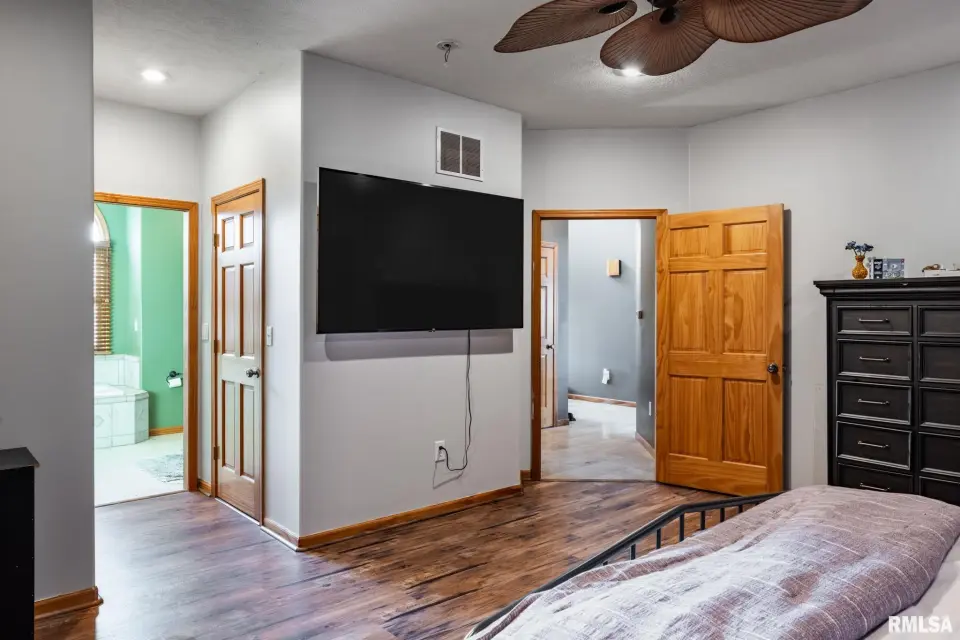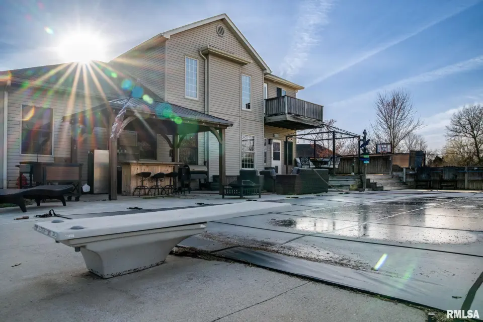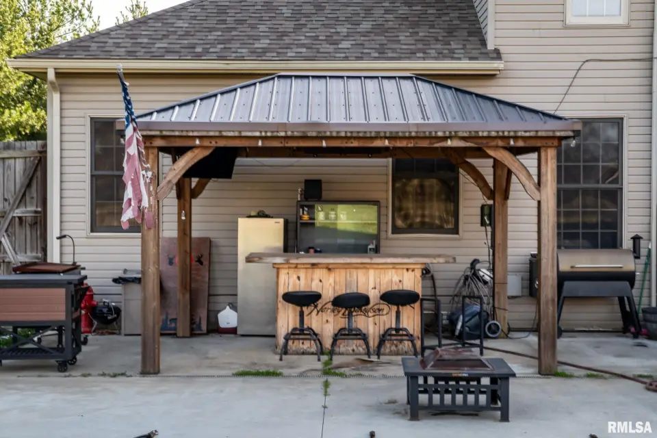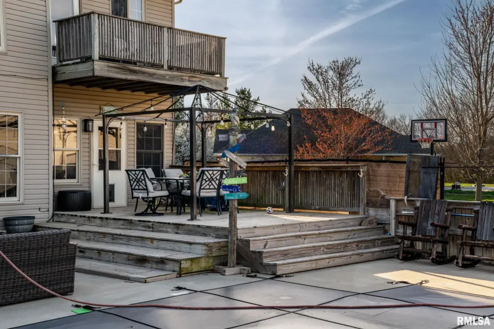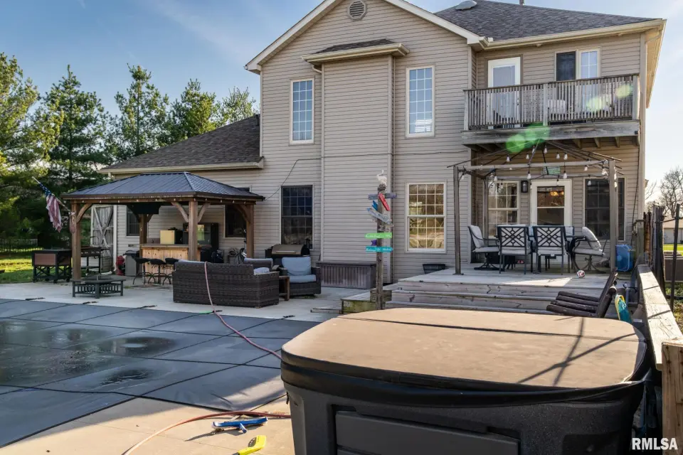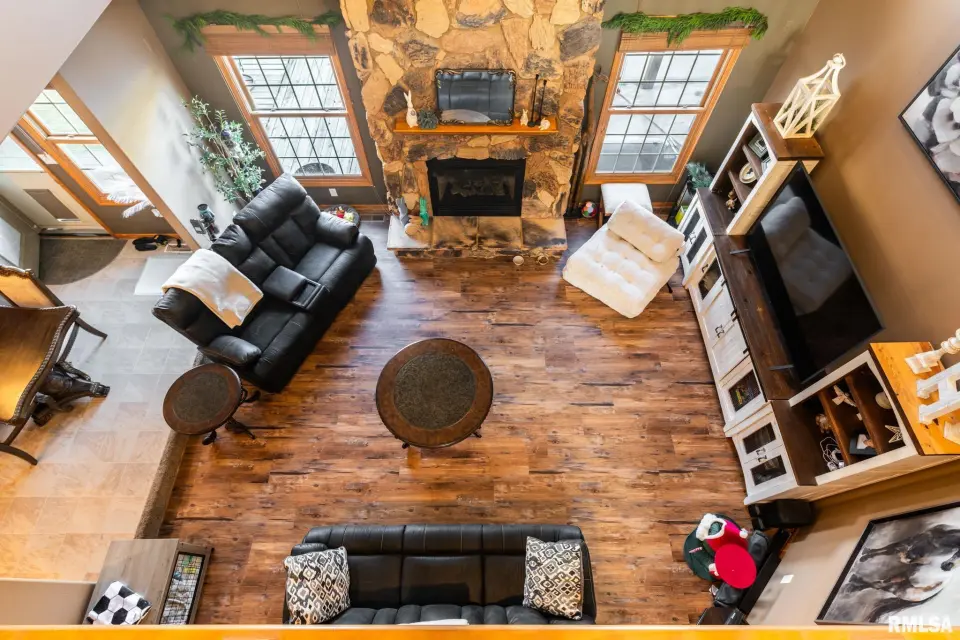 The open-concept layout highlights a beautifully designed kitchen complete with a gas stove, rich hickory cabinetry, and sleek under-cabinet lighting. In the living area, high ceilings and a warm gas fireplace create a welcoming space perfect for relaxing or entertaining. The main floor features an elegant primary suite with dual closets, double vanities, a jetted soaking tub, and a separate shower—your own private retreat. Upstairs, you’ll find two bedrooms connected by a shared Jack-and-Jill bathroom, along with a flexible space that works well as a home office or recreation area. One bedroom even includes access to a private deck—ideal for morning coffee or unwinding under the stars. Outside, enjoy a backyard designed for leisure and gatherings, featuring a newly installed in-ground saltwater pool (2023) surrounded by mature landscaping. Recent updates include a new roof (2023), refrigerator (2024), range (2022), A/C compressor (2023), water heater (2022), luxury vinyl flooring (2023), hot tub (2023), and wood deck (2023). Additionally, the property includes a spacious 36x56 detached outbuilding with electricity and a concrete floor, offering plenty of room for storage, hobbies, or workspace. This is a rare opportunity to own a beautifully updated home with exceptional features, schedule your showing today!