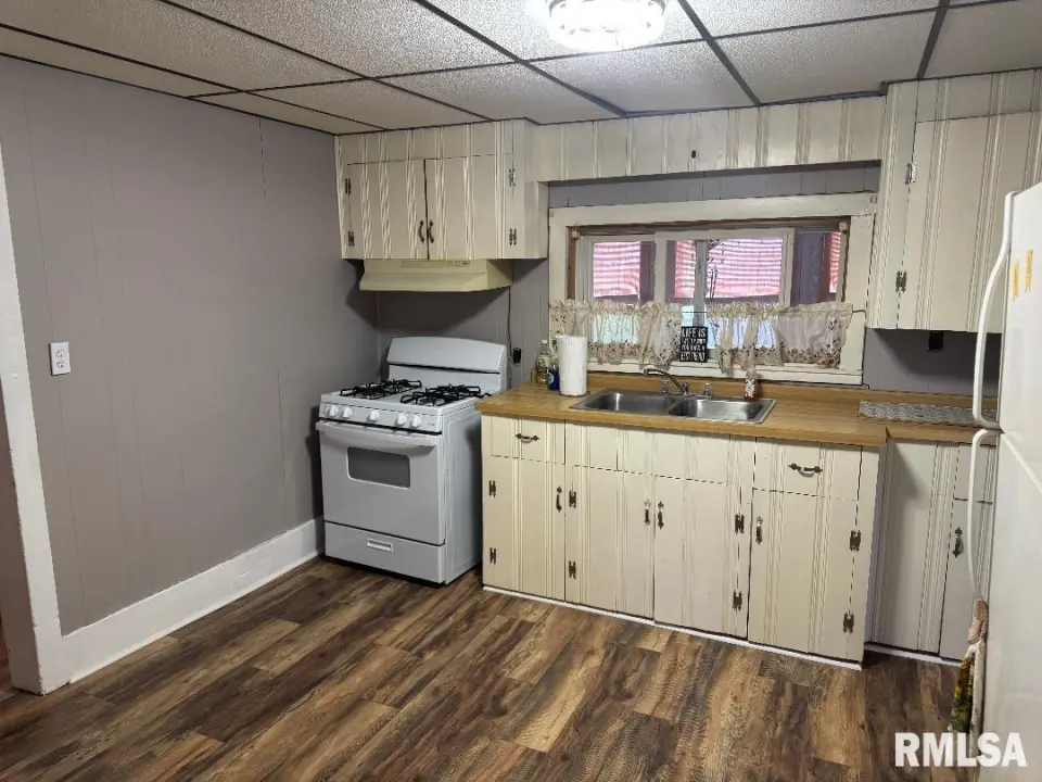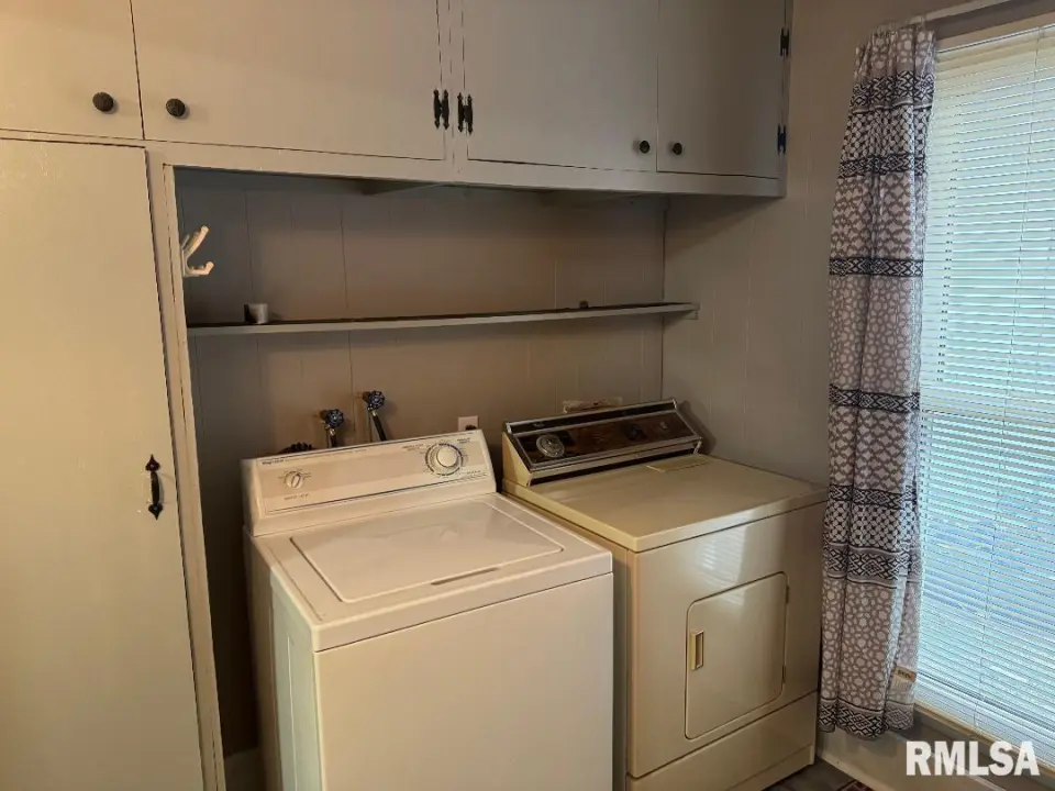 2 Bedrooms and a full bath with a main floor laundry area. The kitchen is very spacious with adequate cabinet space, and appliances are included, even a washer and dryer. New laminate flooring throughout most of the upper level, and newer windows. There is a partial unfinished basement for storage and the utilities. There is also a main floor utility room for storage. Off the kitchen is a nice covered 3 seasons room perfect to stay out of the elements and enjoy the spacious yard, There is also a 2.5 car garage, and a shed. This home is cheaper than rent. This home was owned and loved by the same family for many years.