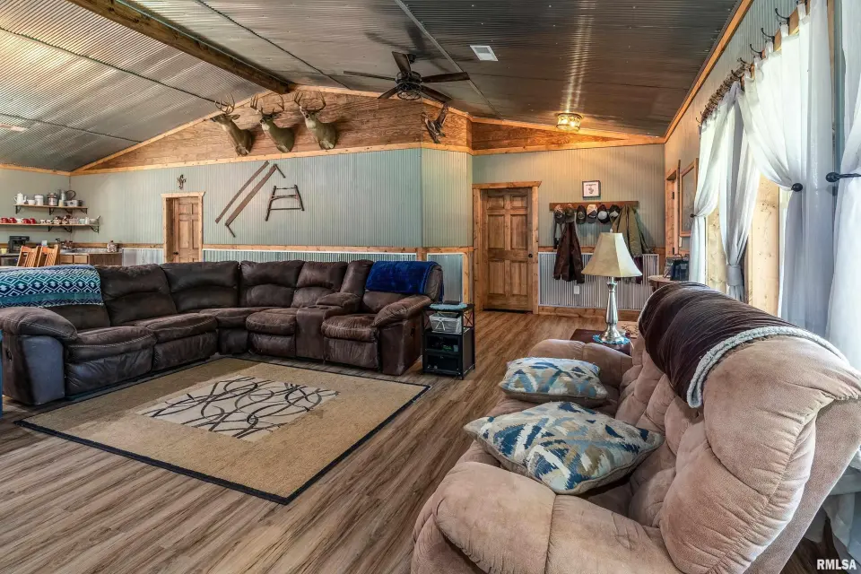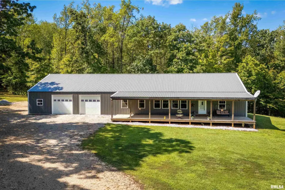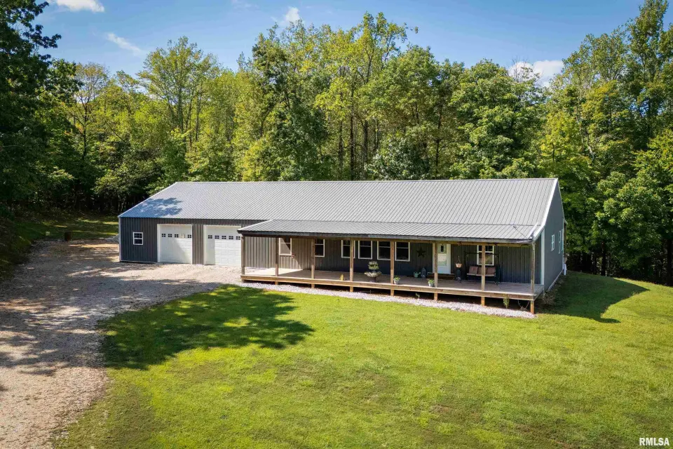There is a spacious 4 bedroom, 3 bath lodge, thoughtfully designed, sitting on 75 acres of prime hunting and recreational land, making it the perfect getaway or full-time residence. With two kitchens and generous living space, it's designed to host family and friends. If opting to use this as a lodge, it would be a beautiful venue. The floor plan is perfect for multiple guests, including 3 suites, in addition to the open-concept common areas. The attached 3+ car garage, with multiple door openings, is additional space for hosting many. Don't worry....there is a detached, oversized garage for housing all of your toys! The land offers endless opportunities for hunting, hiking, ATV riding, or simply enjoying the peace and quiet of nature. Approximately 14 acres are open, with the balance in timber. Property is located within 20 minutes of Cape Girardeau. Whether you are looking for a weekend escape, a hunting camp, or a place to gather and entertain, this property will not disappoint! Come sit on the porch and discover for yourself how fantastic Southern Illinois is! AN ADDITIONAL 184 SURVEYED ACRES ADJOINING THIS PROPERTY ARE AVAILABLE. See listing for 19168 County Line Road, Jonesboro, IL.