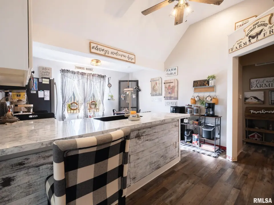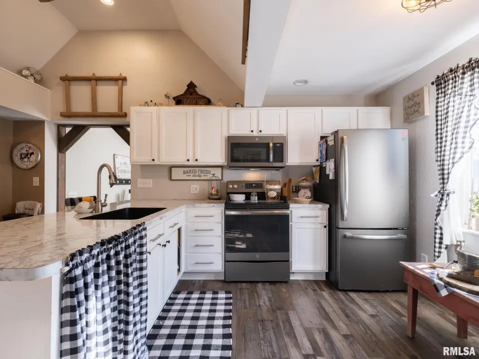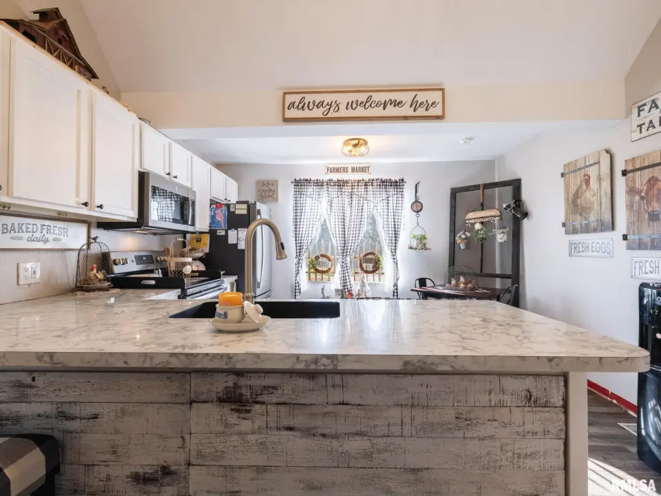 The vaulted ceilings add a spacious, airy touch, while the layout offers comfortable everyday living. The kitchen and living spaces flow nicely, creating a warm and welcoming atmosphere, and the convenience of main floor laundry makes daily routines a breeze. Major updates completed in 2017, including the roof, septic system, and central air provide peace of mind for years to come. The unfinished basement includes a sump pump and provides excellent storage space. Outside, you’ll find an oversized 2-stall detached garage, perfect for extra storage, hobbies, or workspace. If you’re looking for charm, updates, and functionality all in one...this is it!