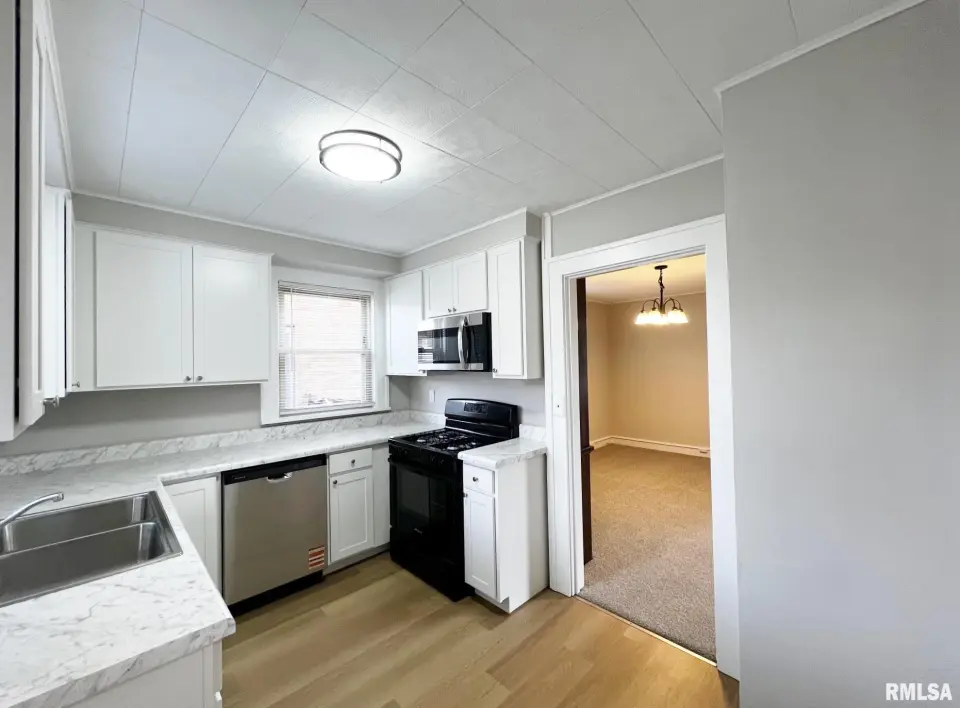 Amenties include; mostly brick exterior, front porch, vinyl replacement windows, interior completely repainted, all new flooring throughout, beautiful original built-in China hutch in the dining room, brand new kitchen cabinets-tops-appliances, full basement, brand new furnace-central air-water heater, fenced yard, garage and more! Agent owned. $149,900