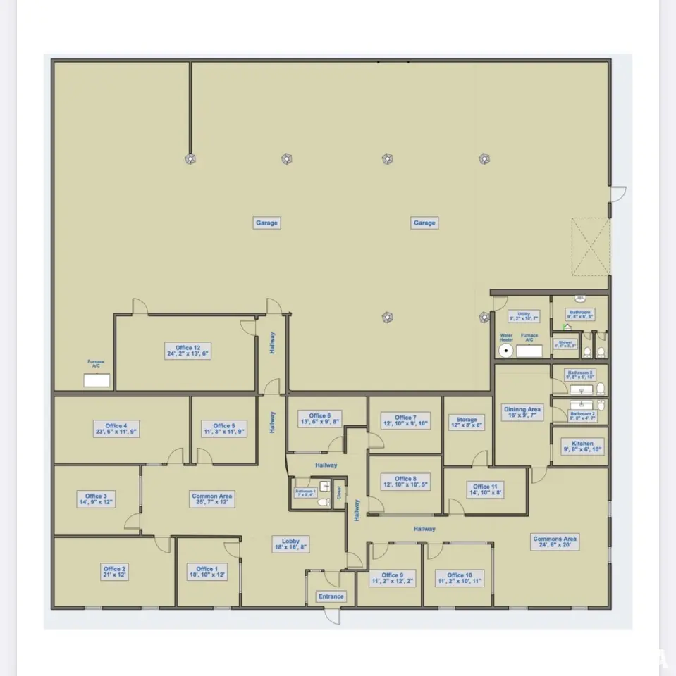 CURRENTLY OUTFITTED WITH 12 PRIVATE OFFICES, 3 BATHROOMS, KITCHENETTE/EMPLOYEE BREAK ROOM. PLUS, 2 GAS/CA AND 2 GAS HEATERS, AND RUBBER ROOF APPROX 10 YRS OLD! SPECTACULAR OPPORTUNITY!