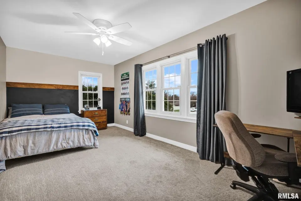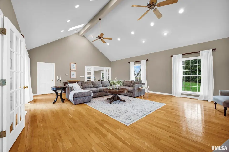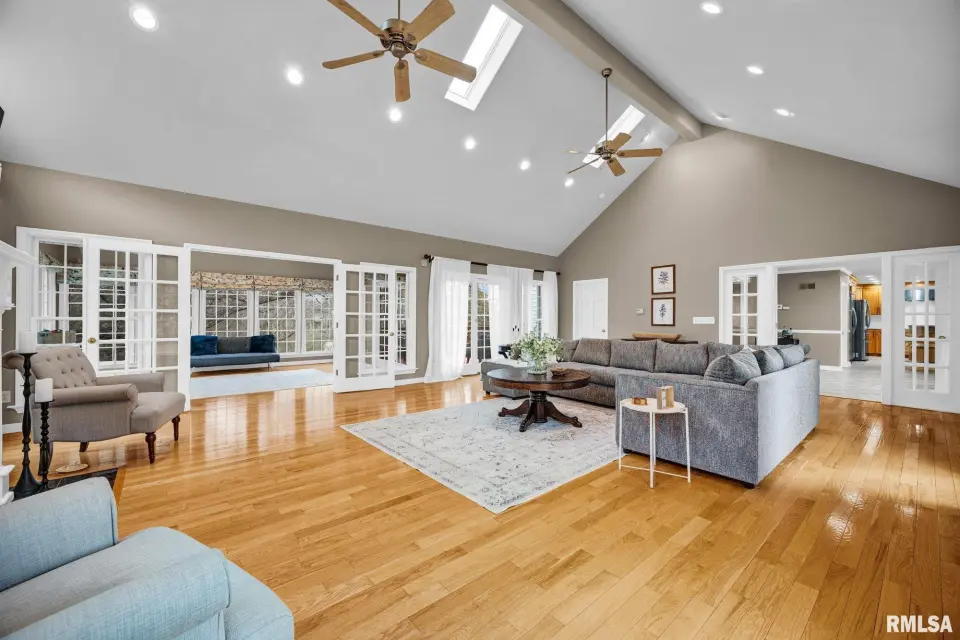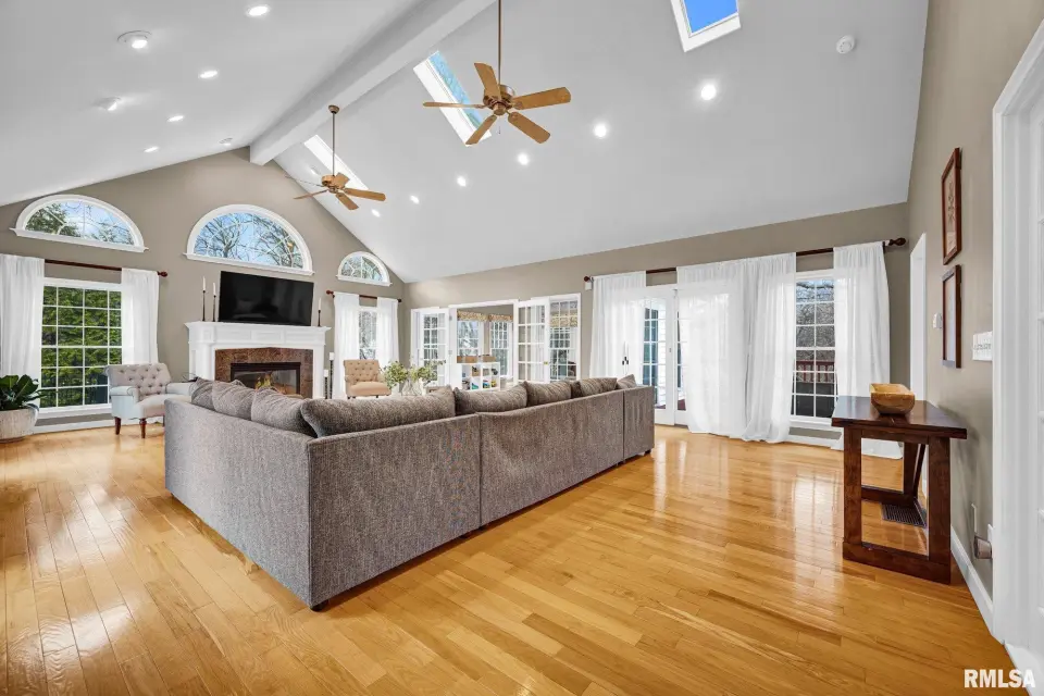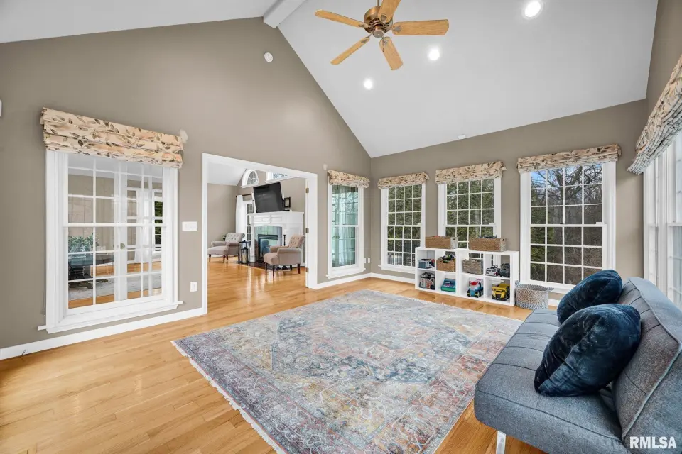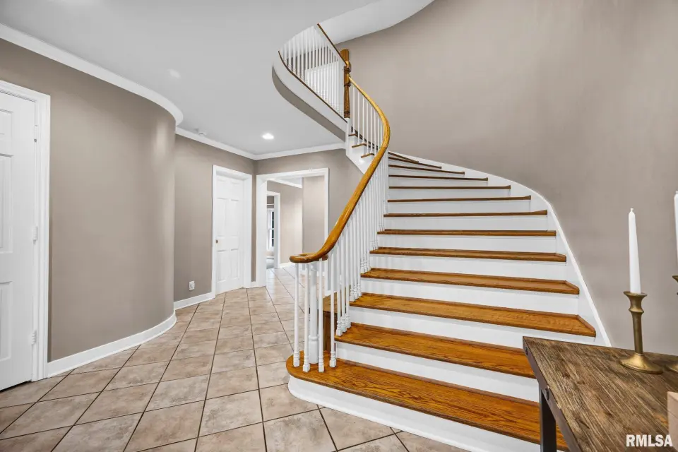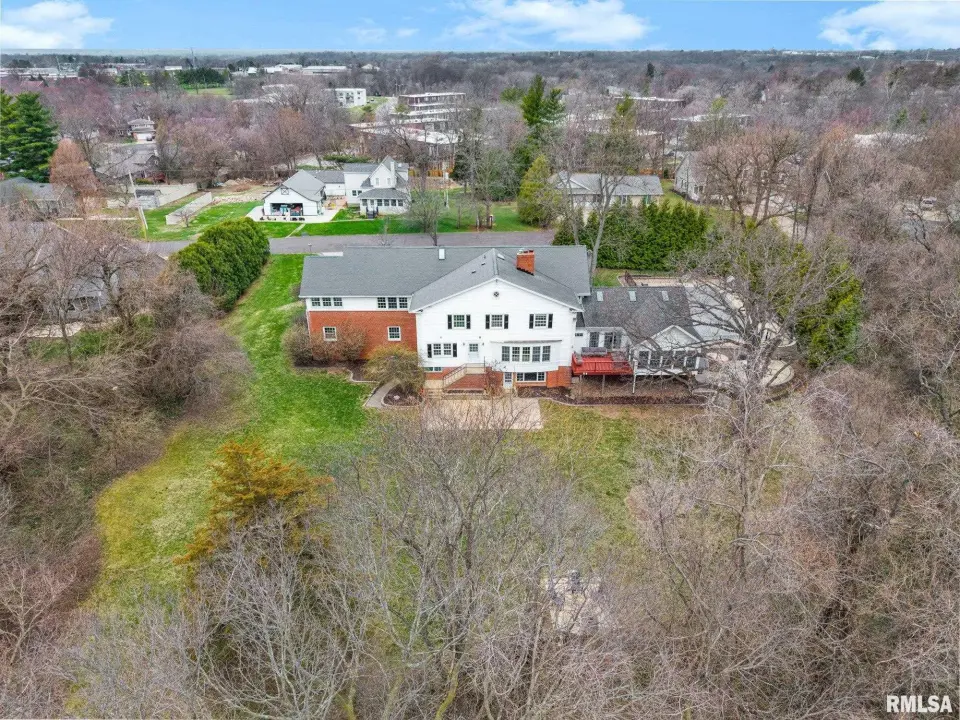 The stately curved staircase greets you at the entry, setting the tone for elegance. At its heart is a stunning open kitchen crafted for modern family living that flows into a vaulted family room and sunroom. You'll find multiple options for private offices or peaceful flex rooms, plus six bedrooms and five full baths. The walkout lower level boasts a rec room, gym, and sauna. With a new furnace and ACs installed in 2020, this solid, beautifully built home offers the perfect blend of privacy and convenience - a secluded retreat just moments from Peoria's best. Call to schedule your private tour of this one-of-a-kind estate today.