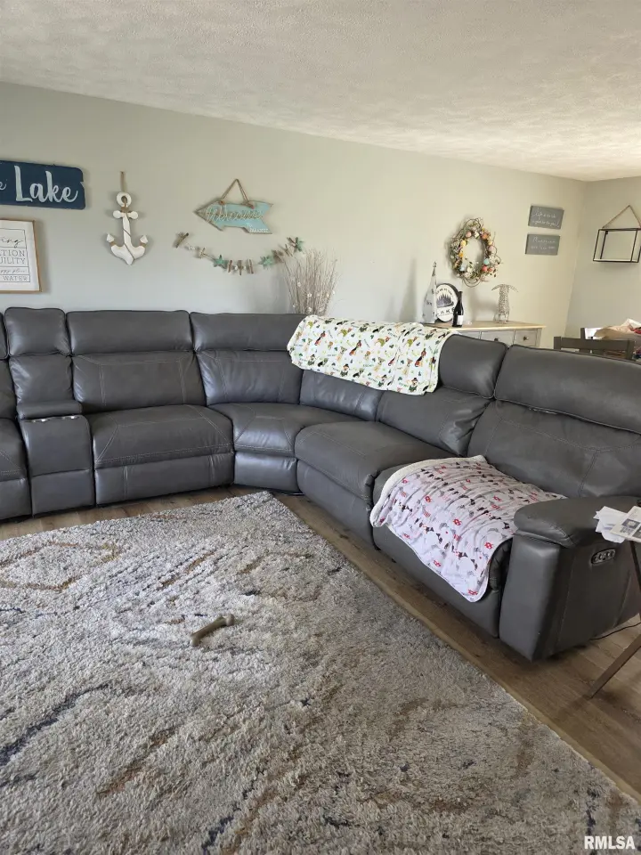 Heat pump for economical heating. Open floor plan in living, dining and kitchen area with gas fireplace. Large deck with screened in area overlooking the lake and picture-worthy sunsets!. Waterfront is boat friendly (needs dock). Oversized garage, as well as partial basement for storm shelter and storage. Close to the marina and The Cross Eyed Bear Bar & Grill for the no-cooking at home times and entertaining guests. Some furnishings could be purchased.