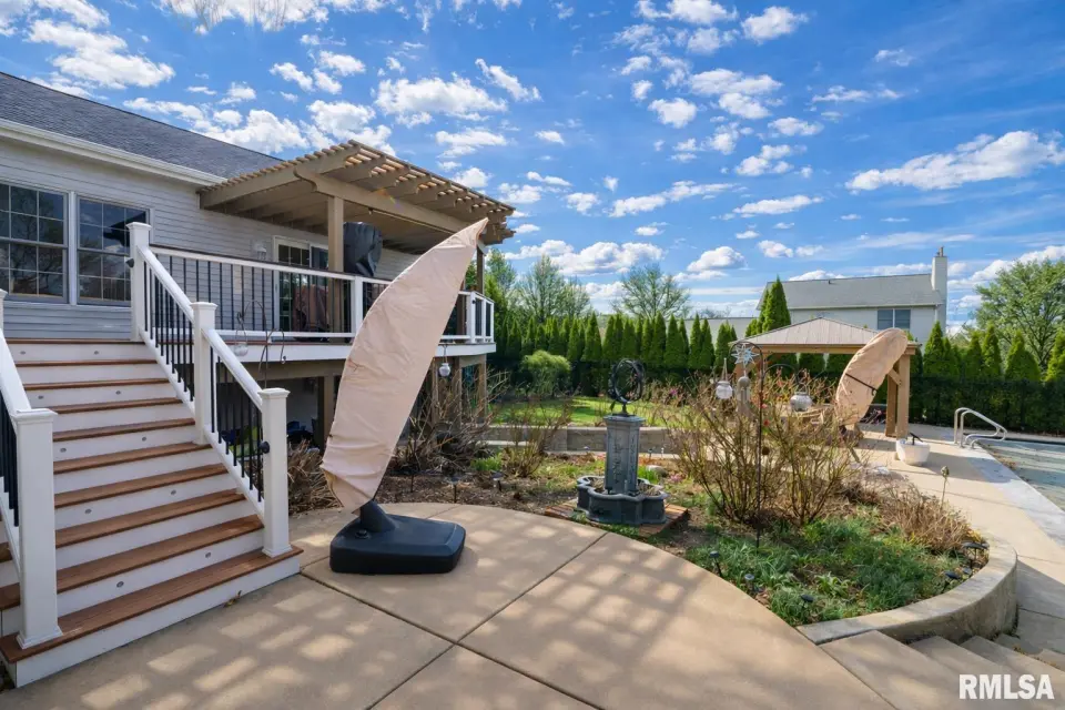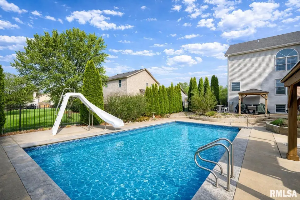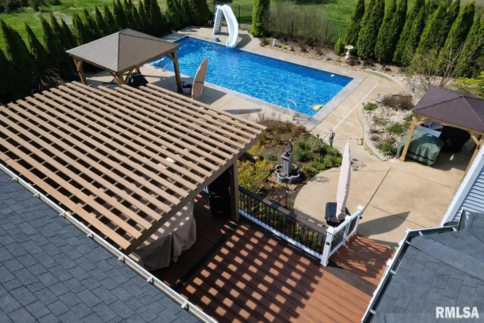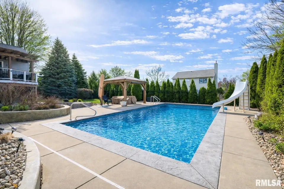 The cooks dream kitchen is both stunning and highly functional, featuring an impressive 13-foot island and an open layout that flows seamlessly into the family room and great room, making it ideal for everything from everyday living to hosting large gatherings. The expanded lower level offers incredible versatility with an additional bedroom, rec room, family room, third fireplace, full second kitchen, second laundry area, and third and fourth full baths. The 2012 addition was completed with all new construction from the basement up, and enhanced with extra insulation in ceilings and interior walls for privacy—perfect for an in-law suite or extended guests. Major updates include 50-year shingles on the addition and a new main roof in 2017, tankless water heater and water softener in 2020, new main floor washer and dryer in 2020, and a brand-new furnace and AC in fall 2023. The pool, installed in 2014, features a heater and new sand filter replaced in 2025. New pool lining (coming in 2026) The primary bath has also been beautifully remodeled. Designed for indoor and outdoor entertaining, the home offers easy access to outdoor spaces, including a newly rebuilt (2025) rear deck with Trex composite, maintenance-free decking overlooking your private backyard retreat along with new pergola and 2 gazebos! Driveway repaved (2025)!